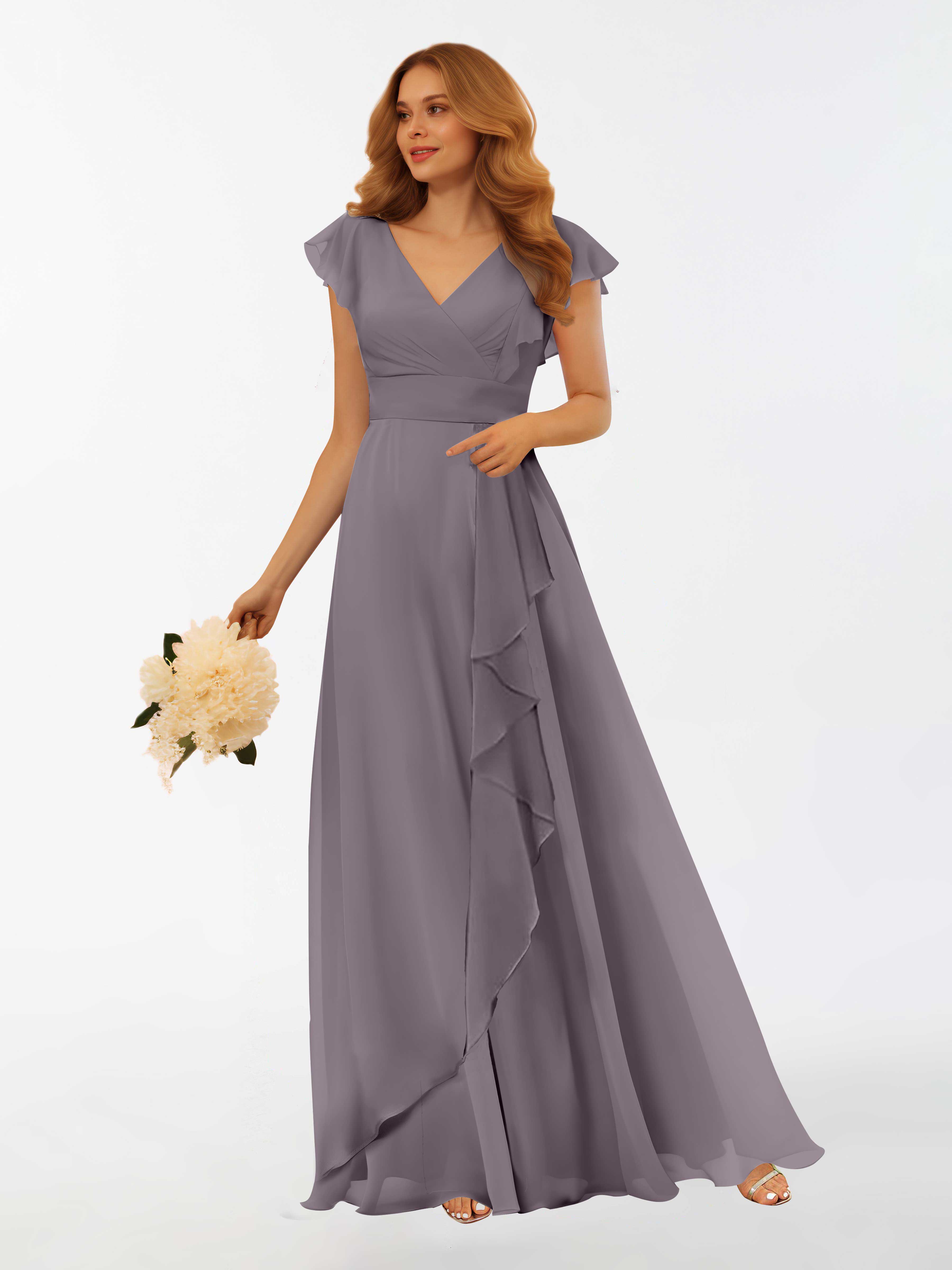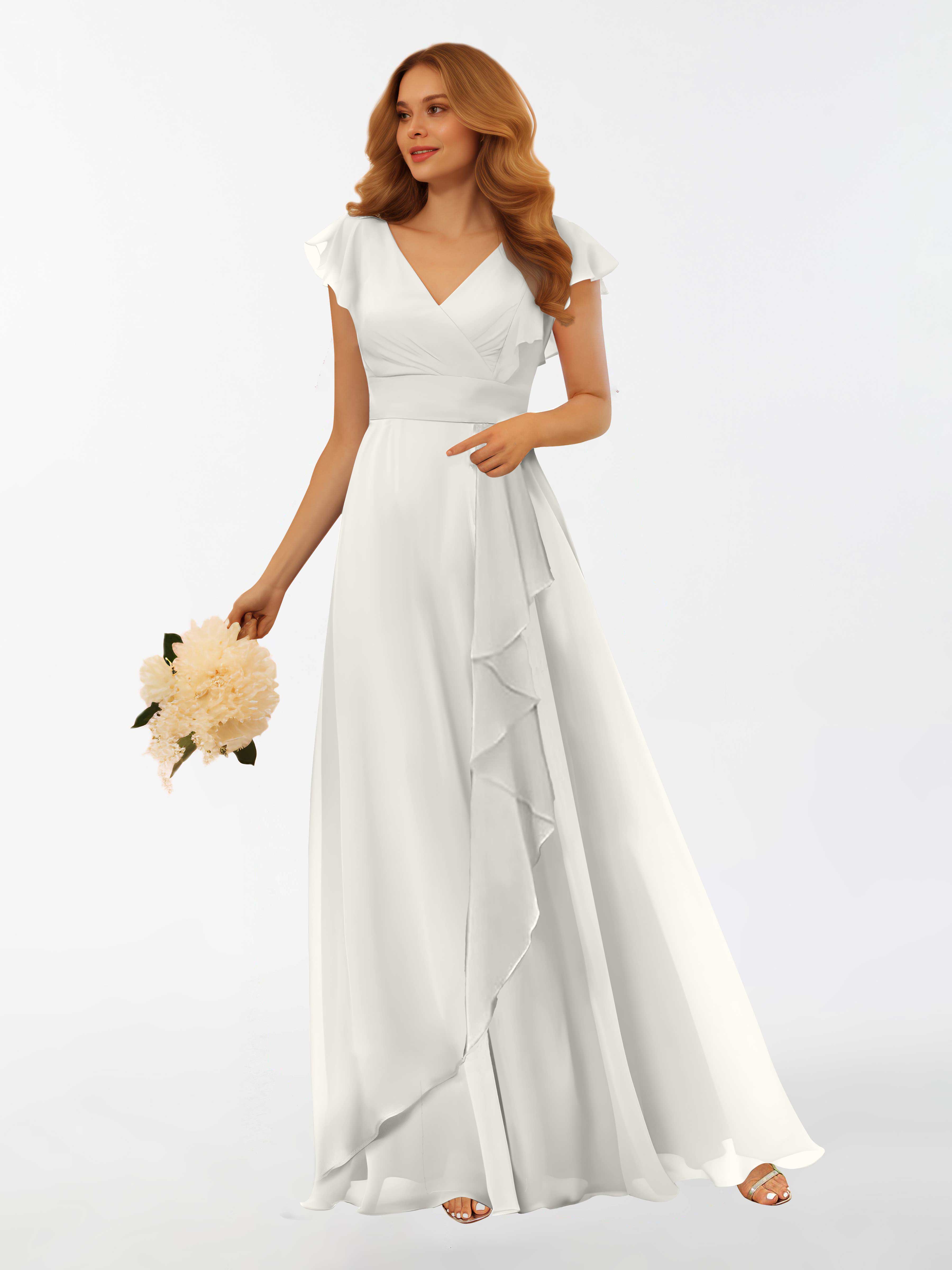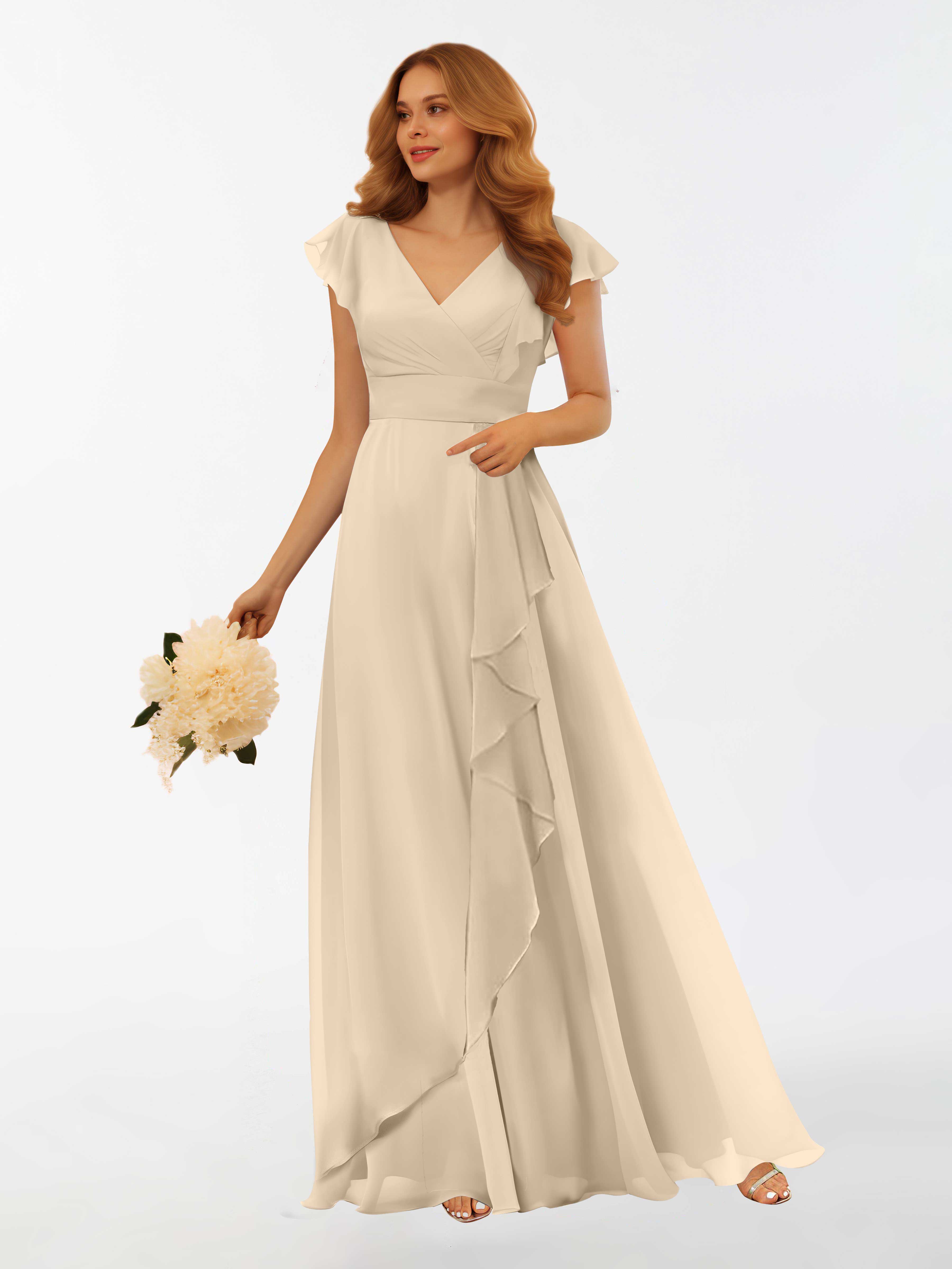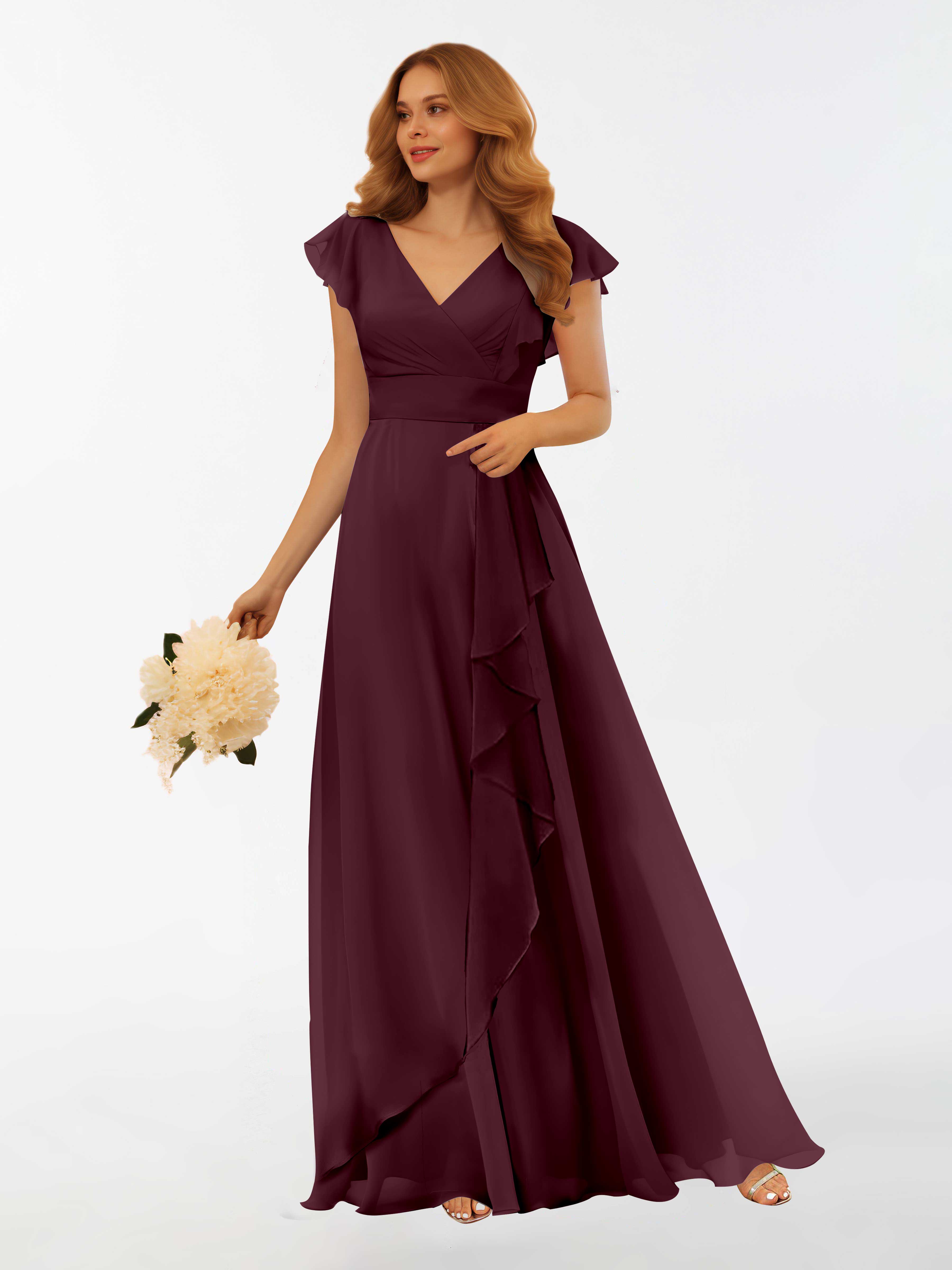 Vera Unique Short Sleeves Long Chiffon Bridesmaid Dresses