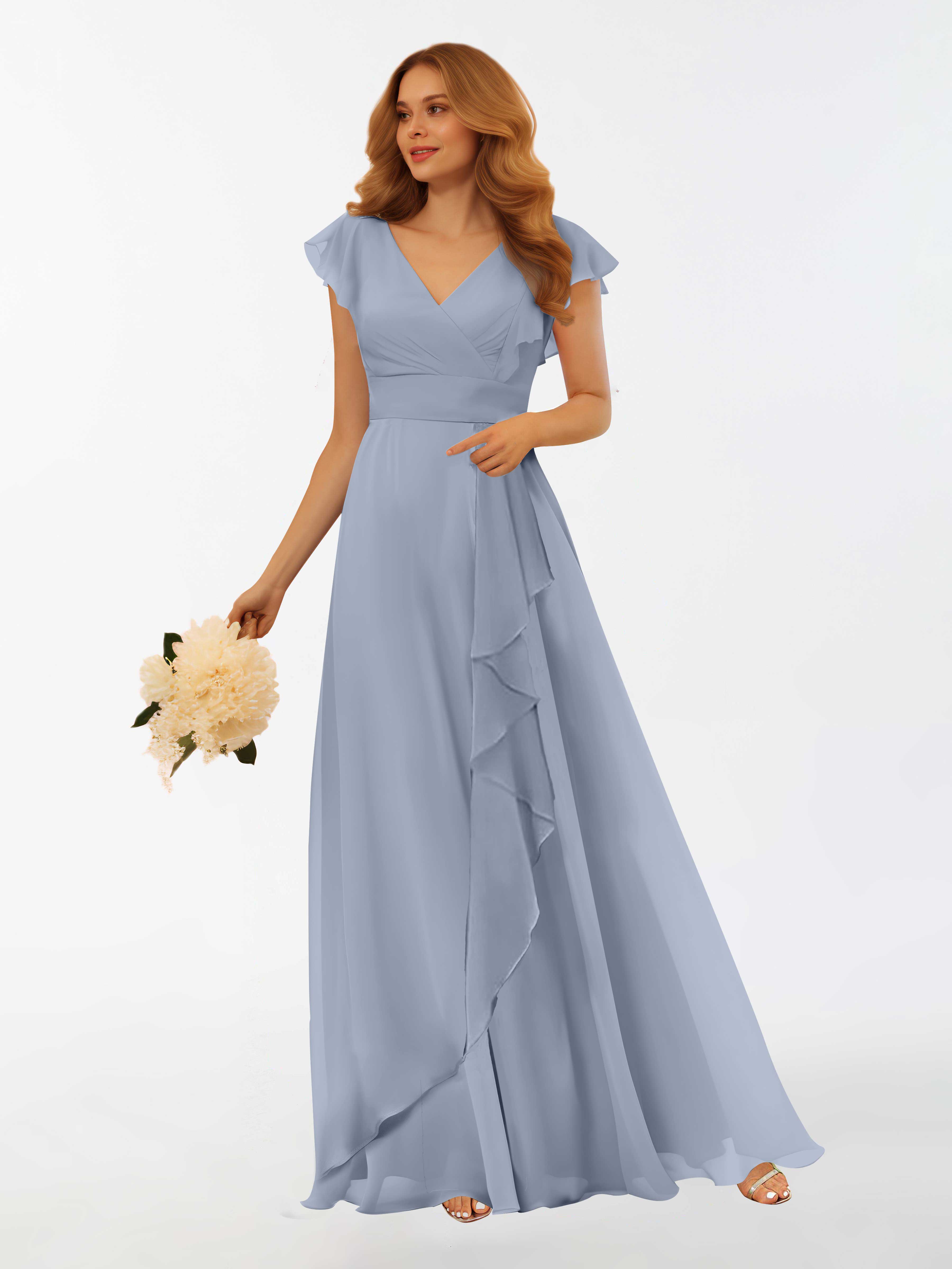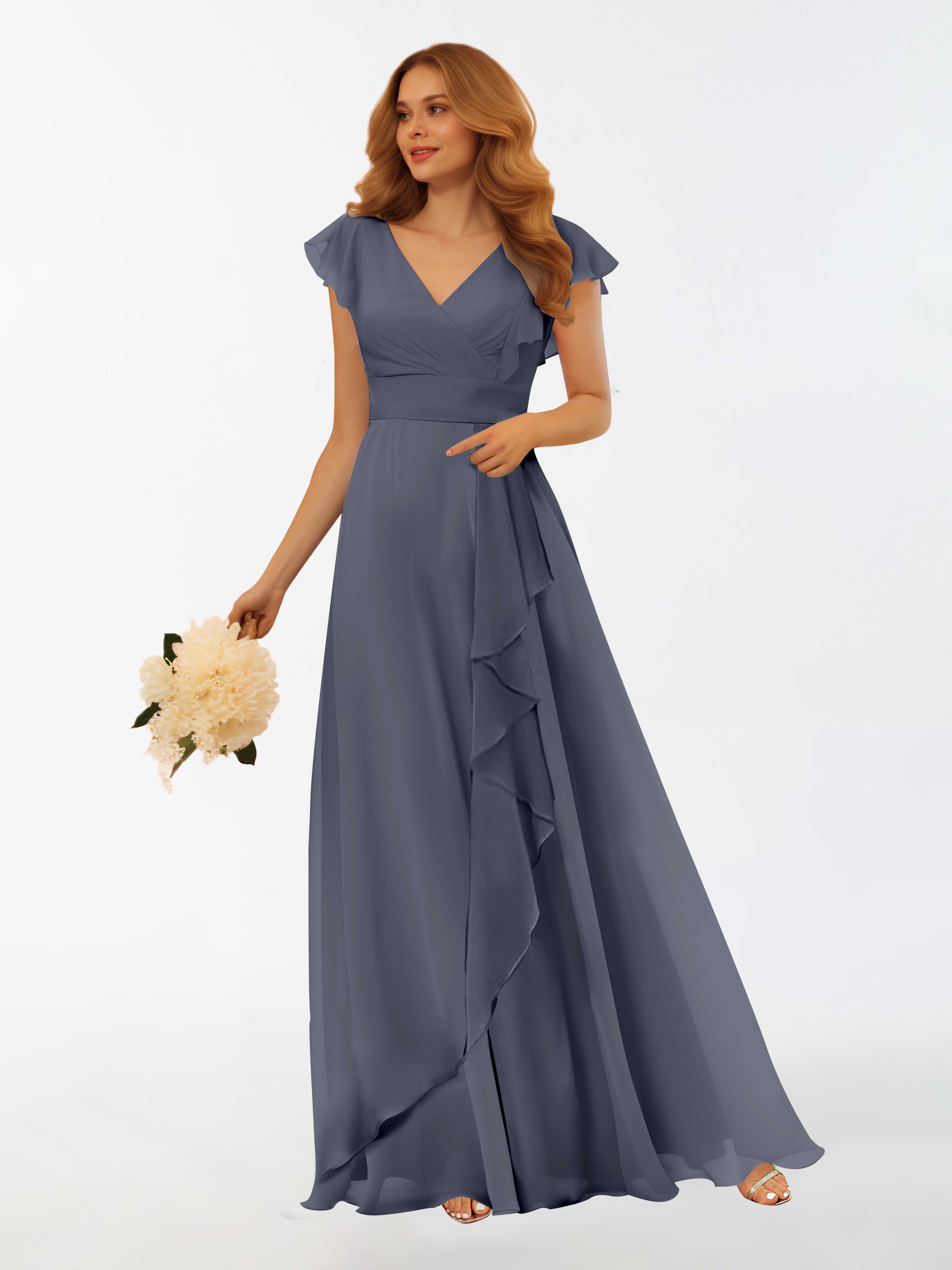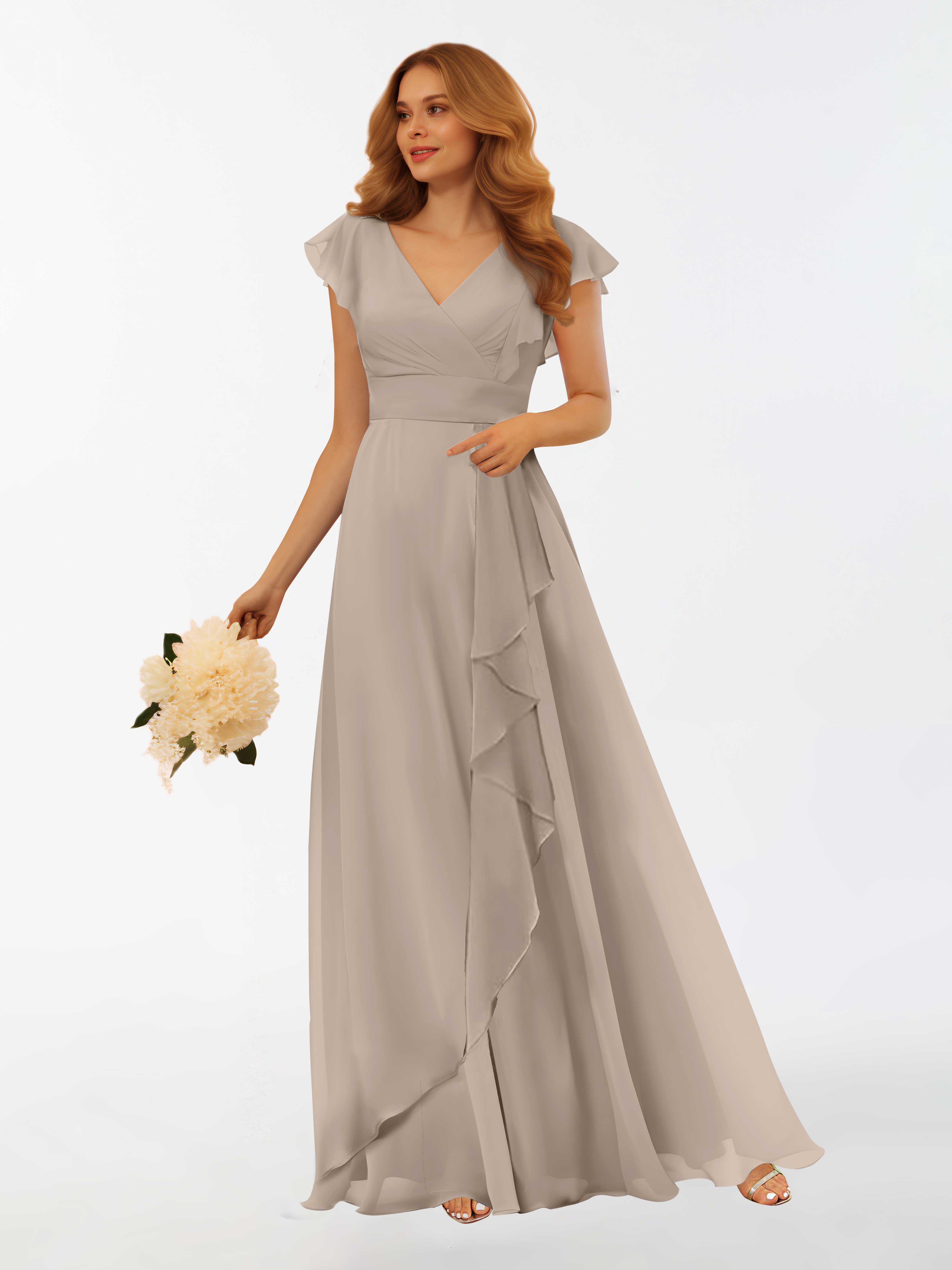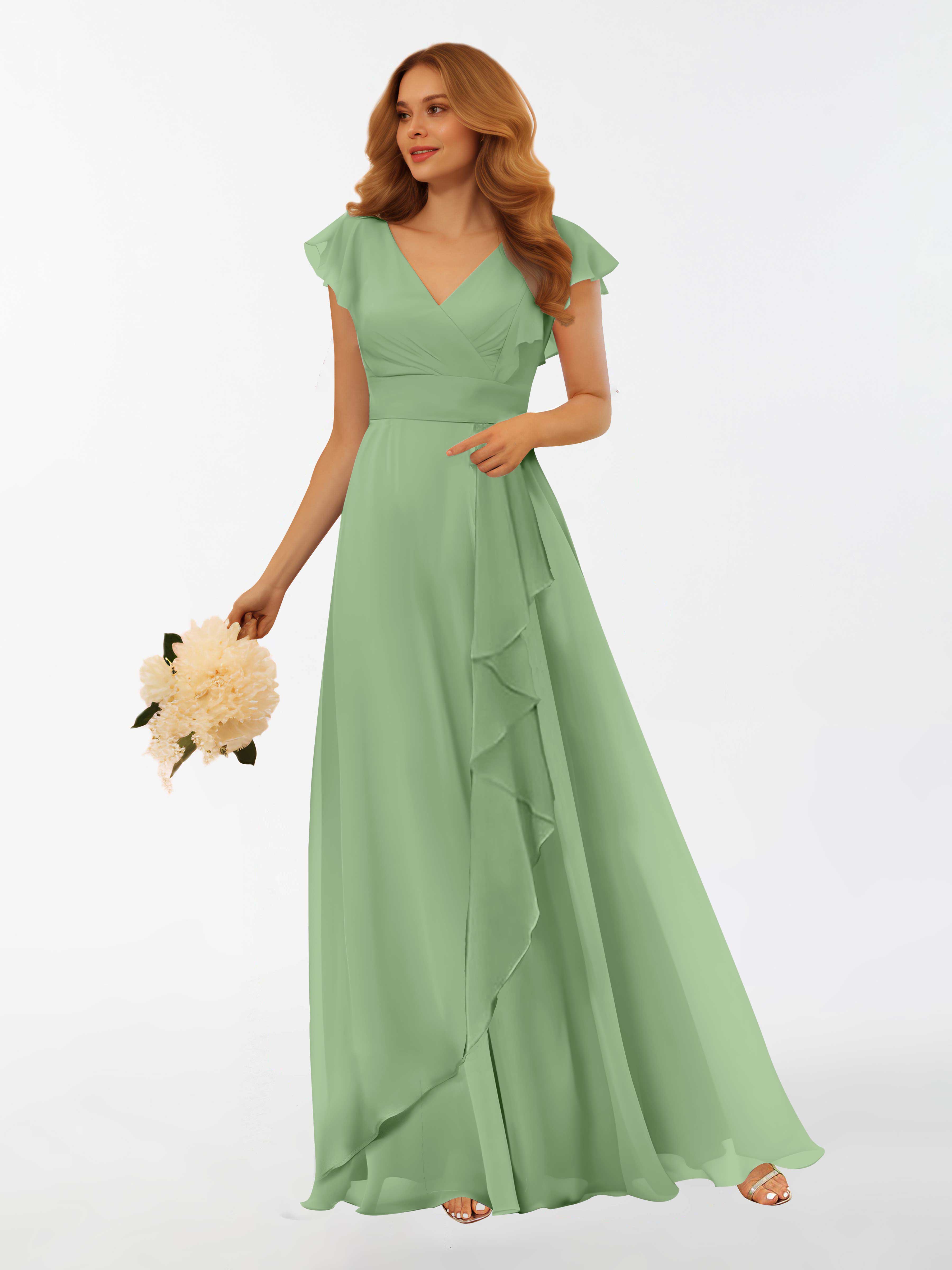 Vera Unique Short Sleeves Long Chiffon Bridesmaid Dresses