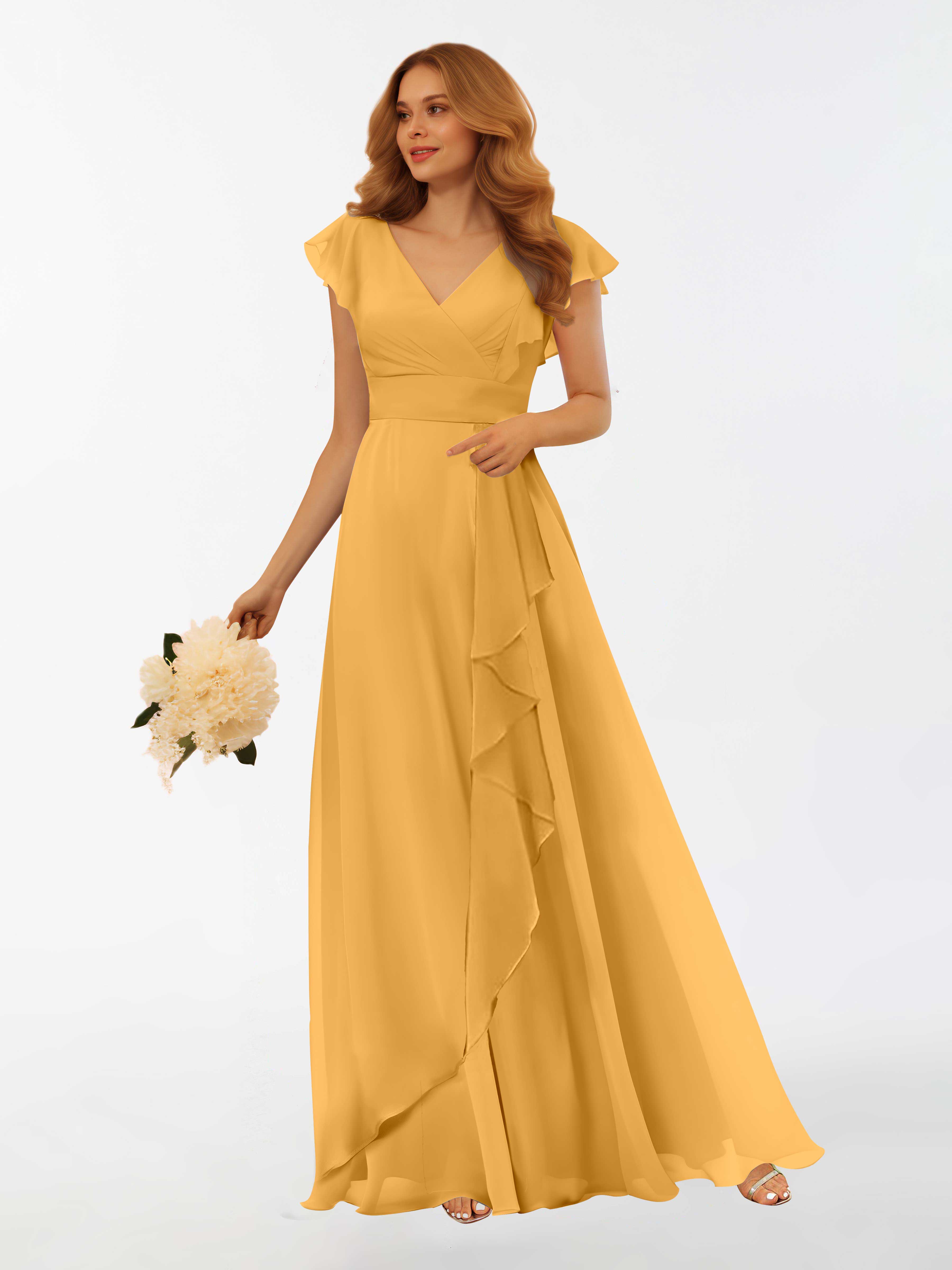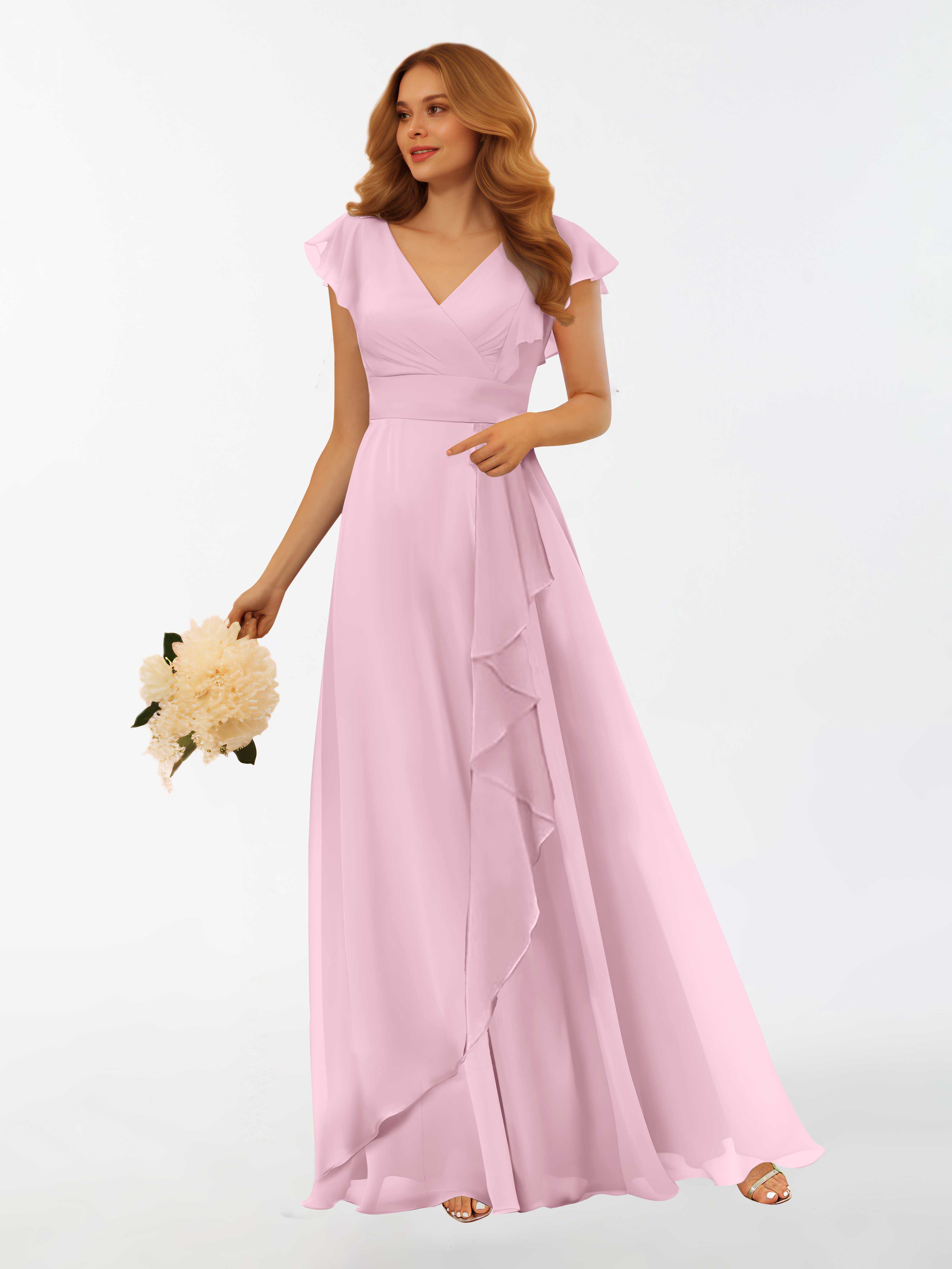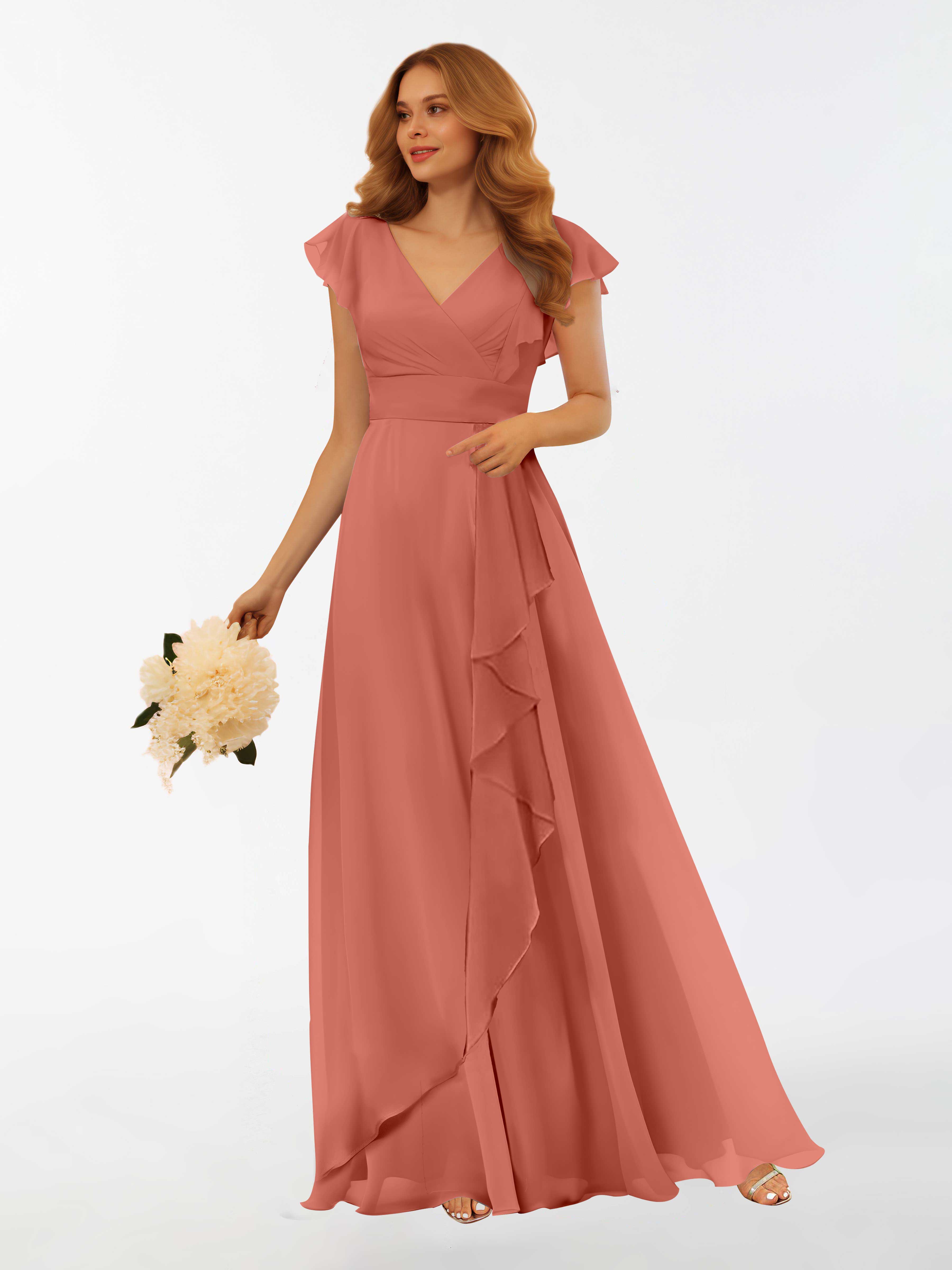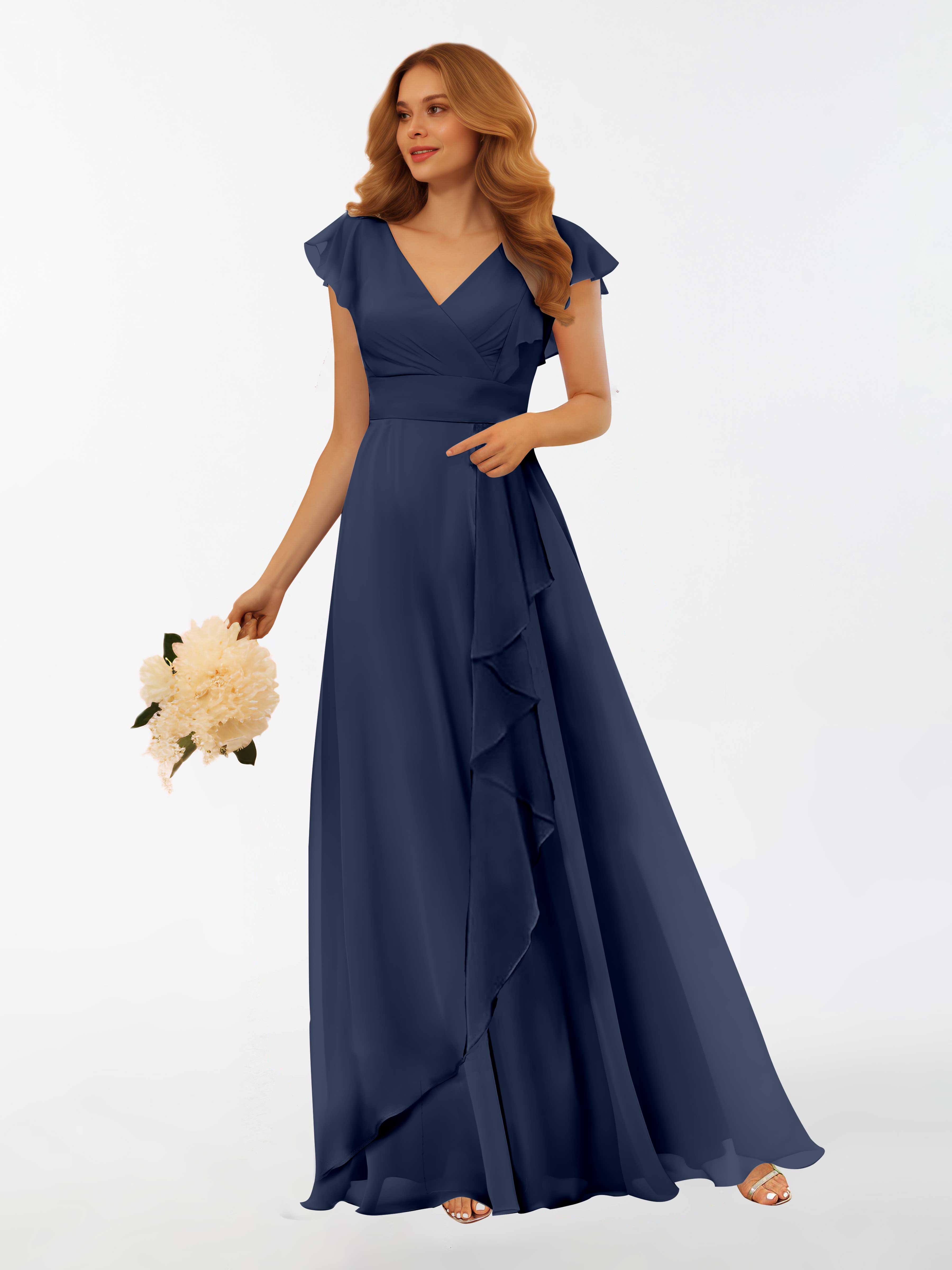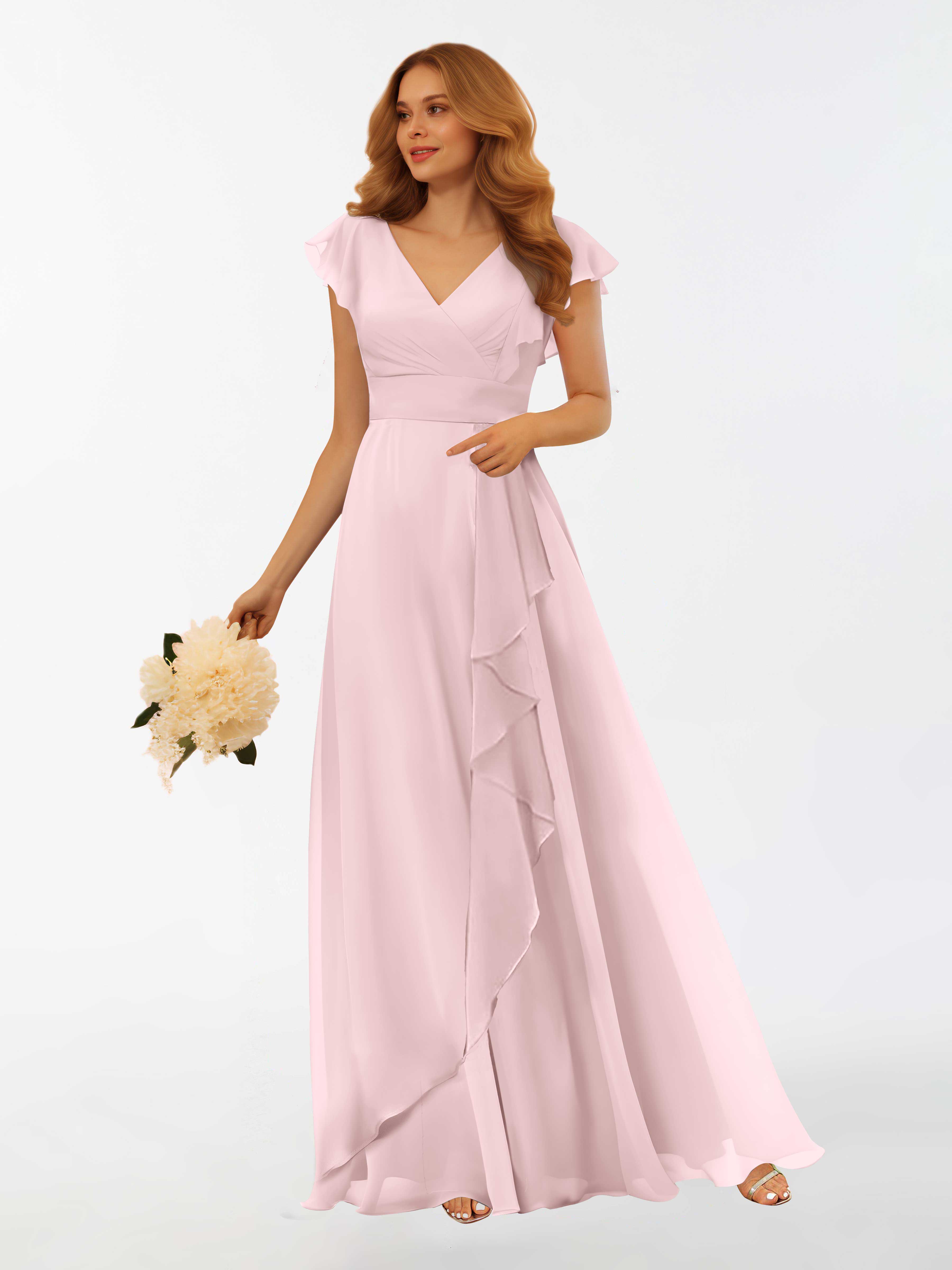 Vera Unique Short Sleeves Long Chiffon Bridesmaid Dresses