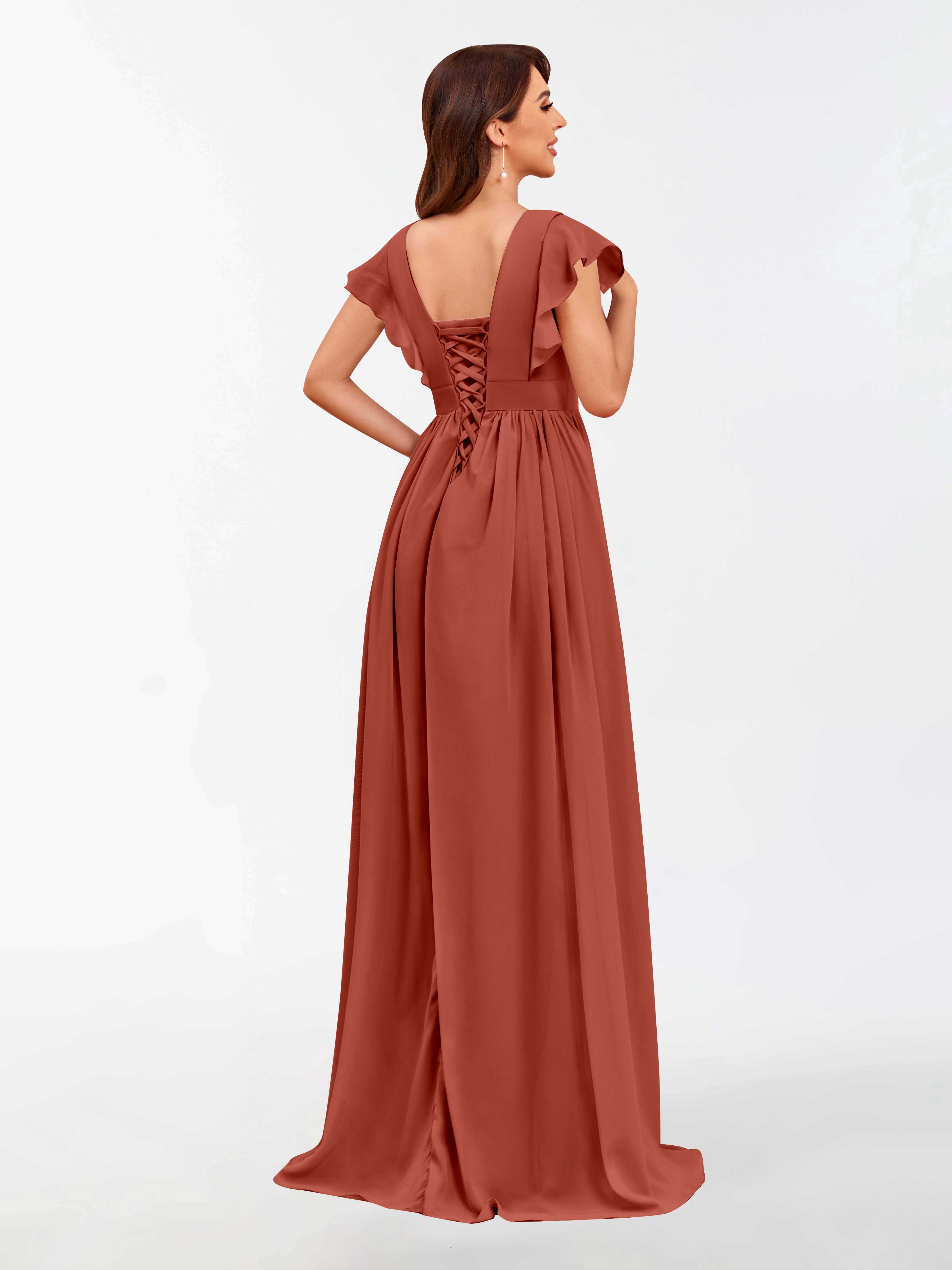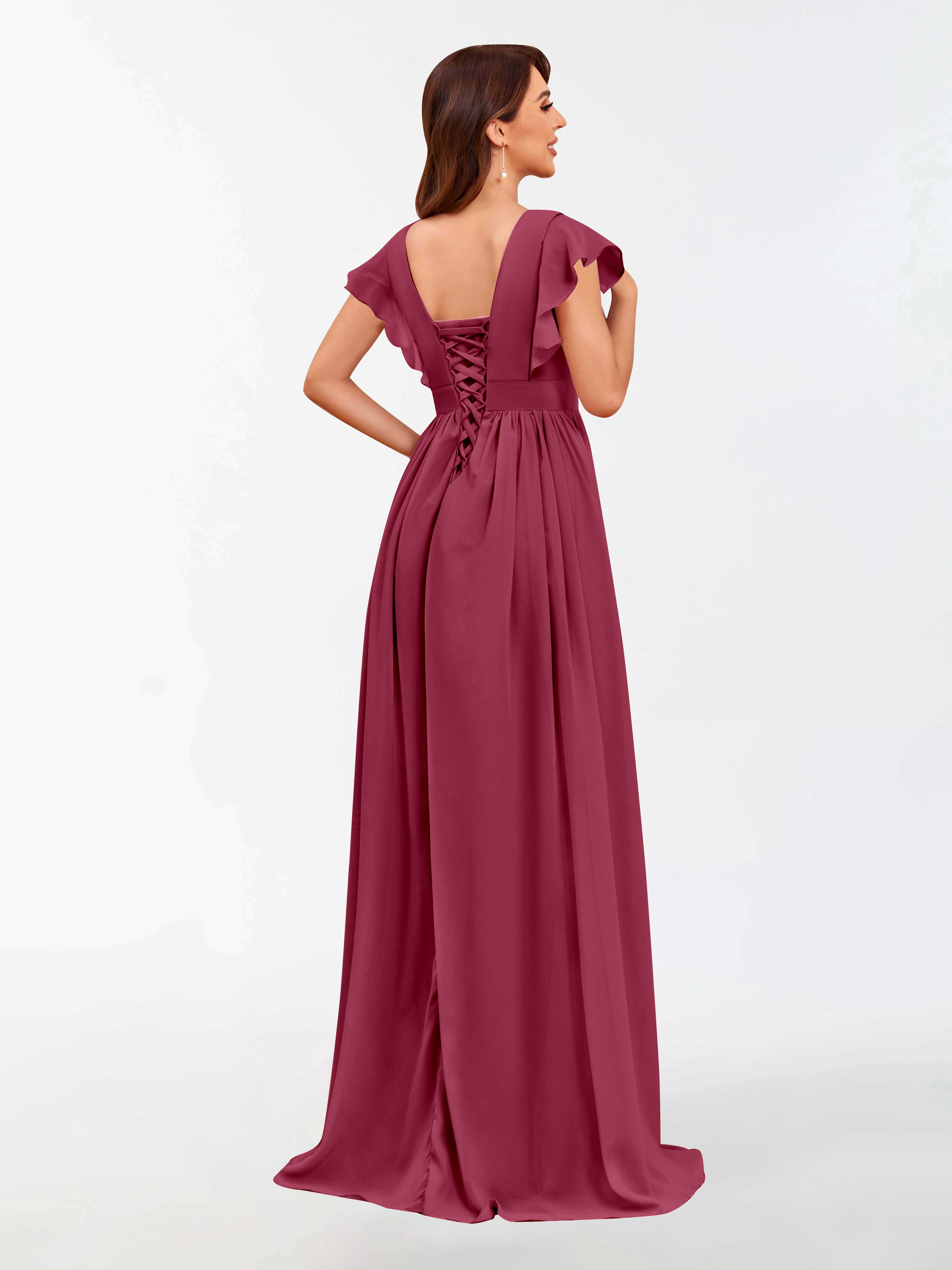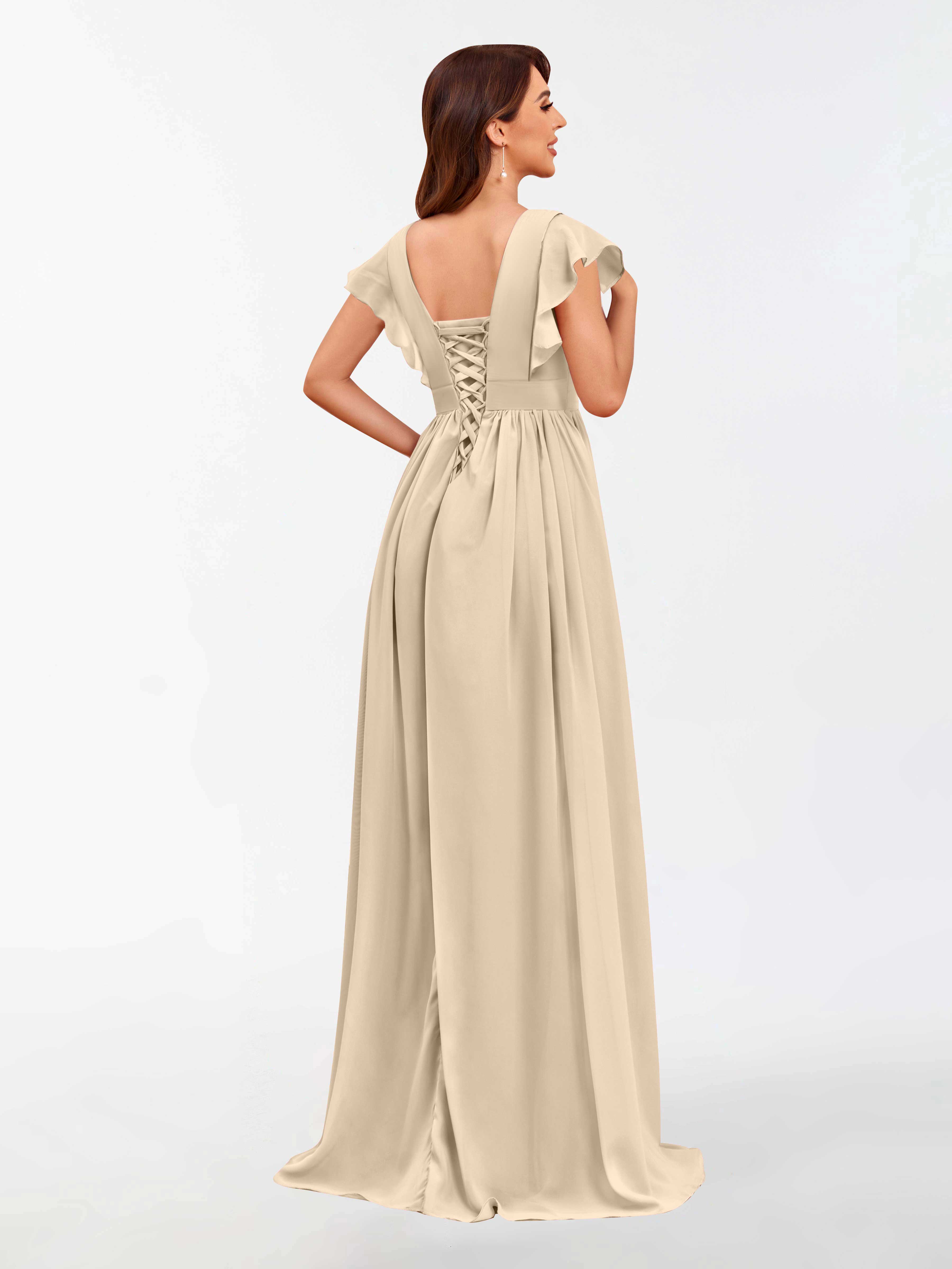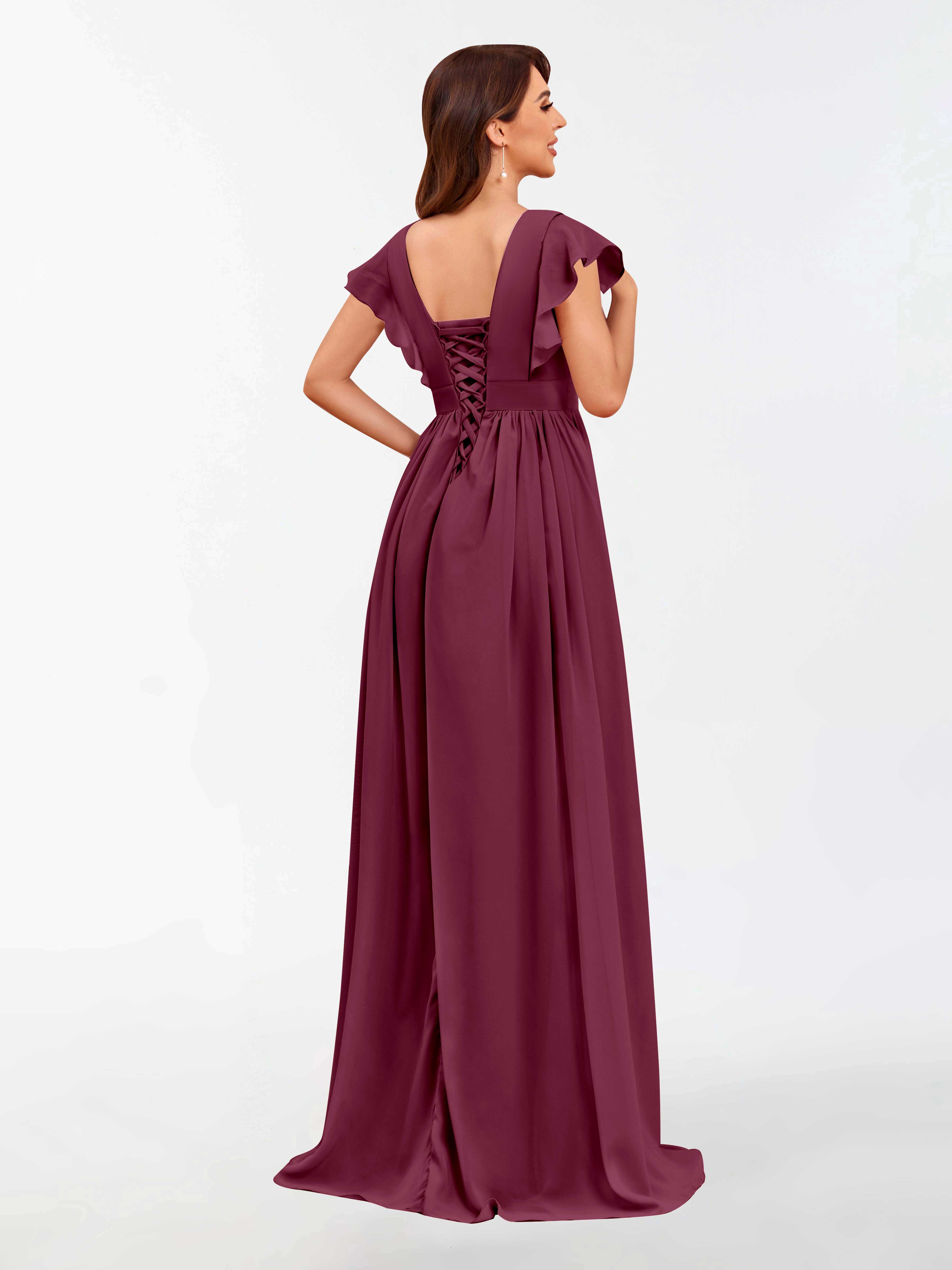 Vera Unique Short Sleeves Long Chiffon Bridesmaid Dresses