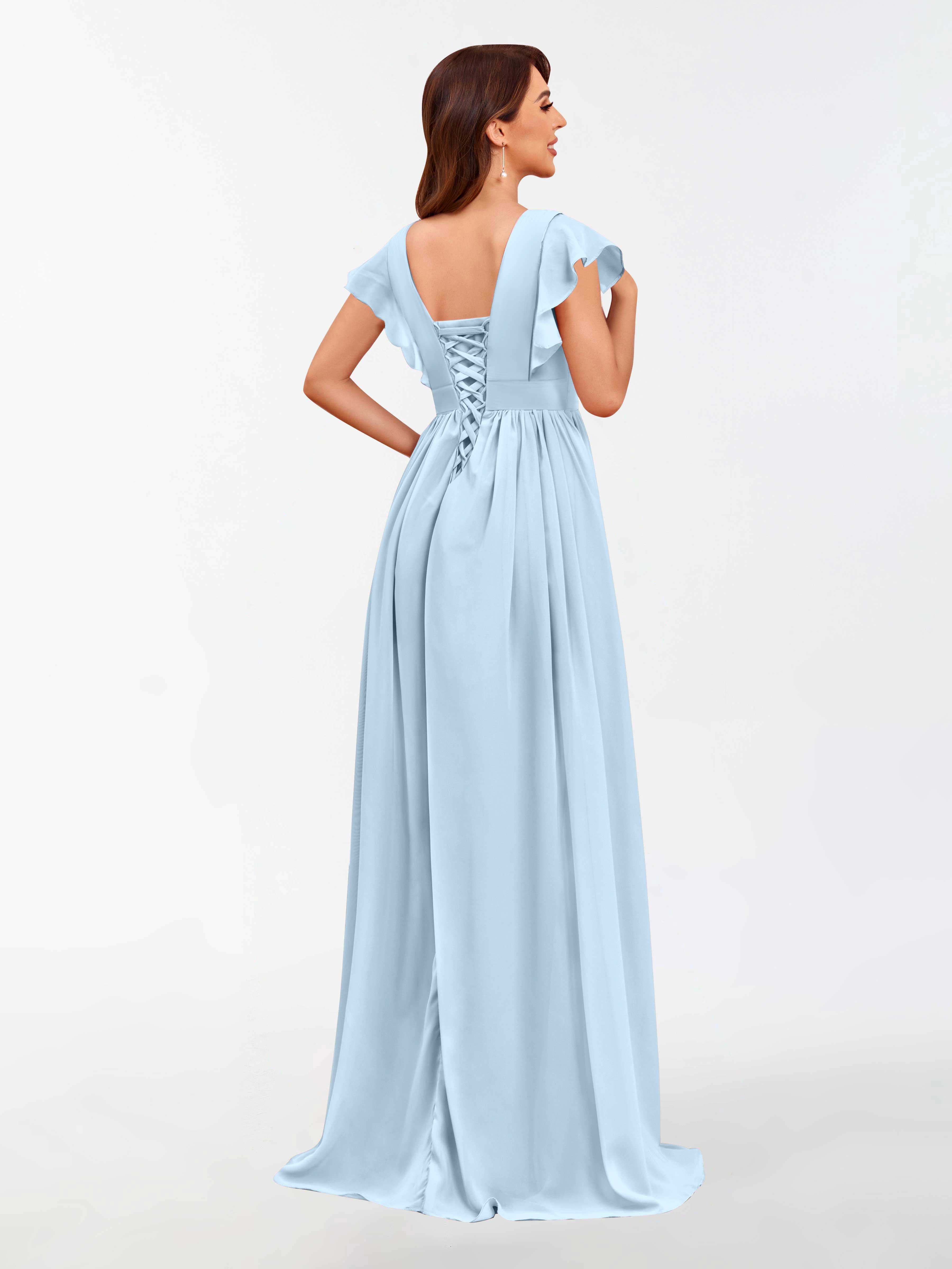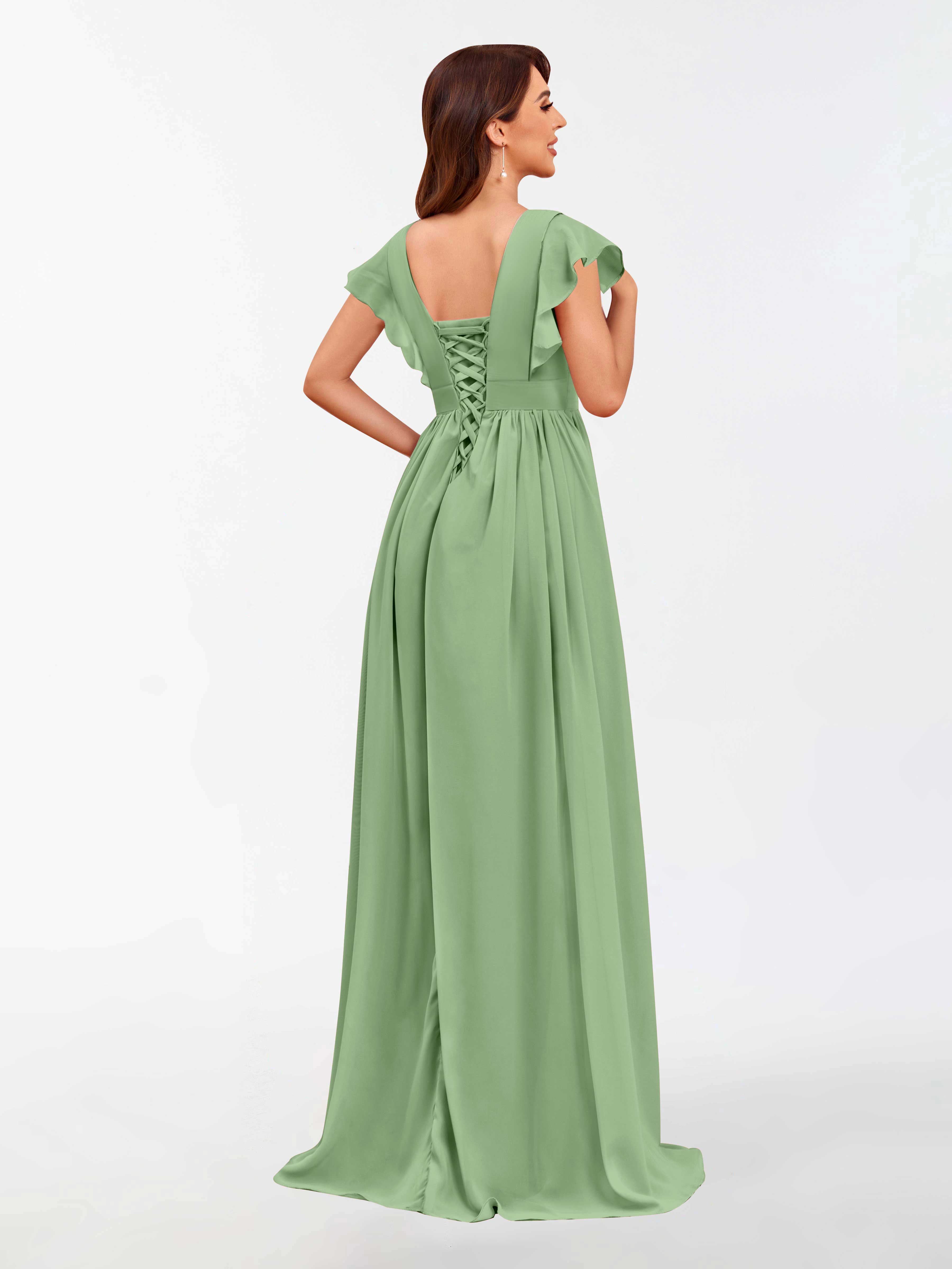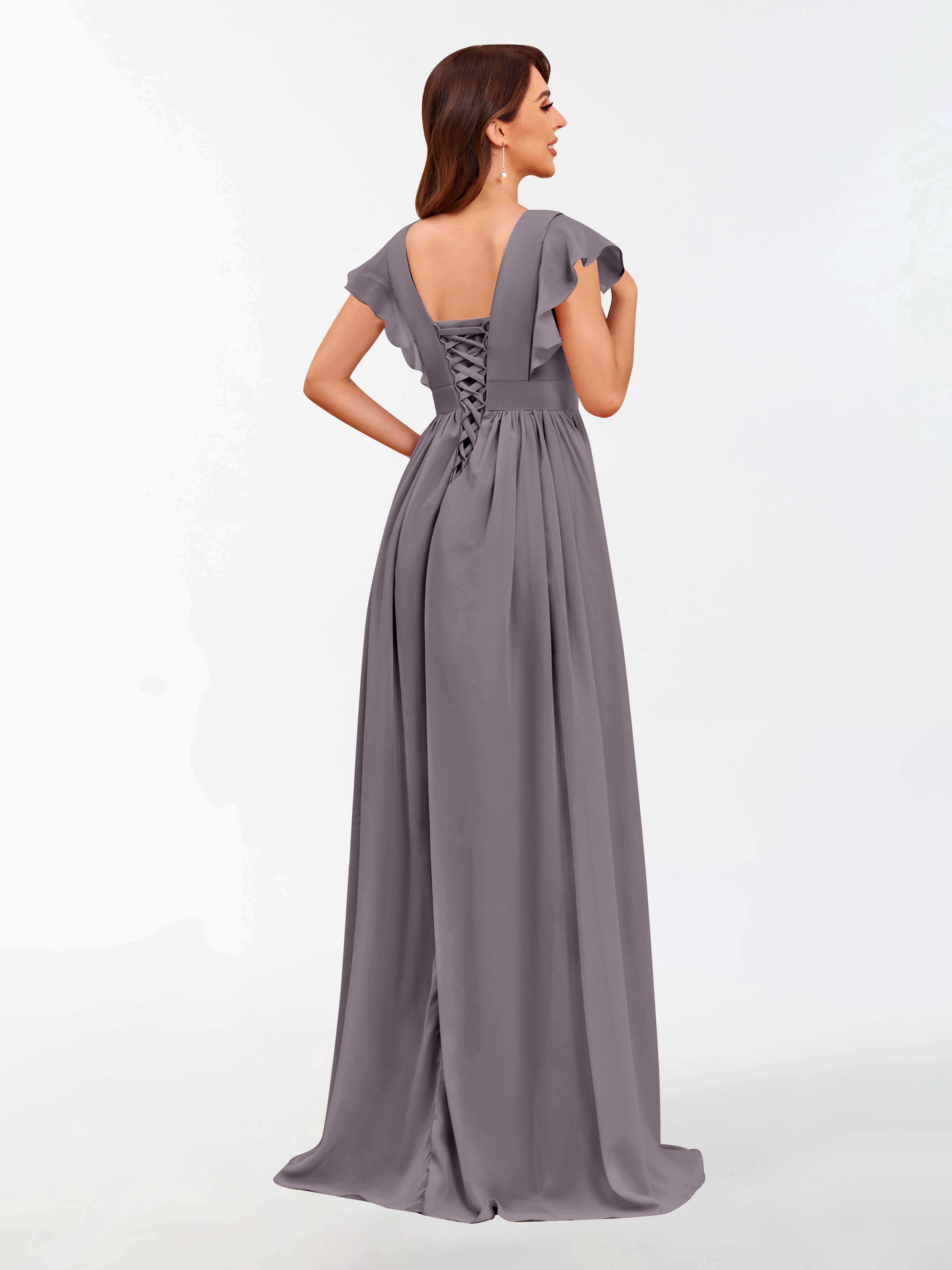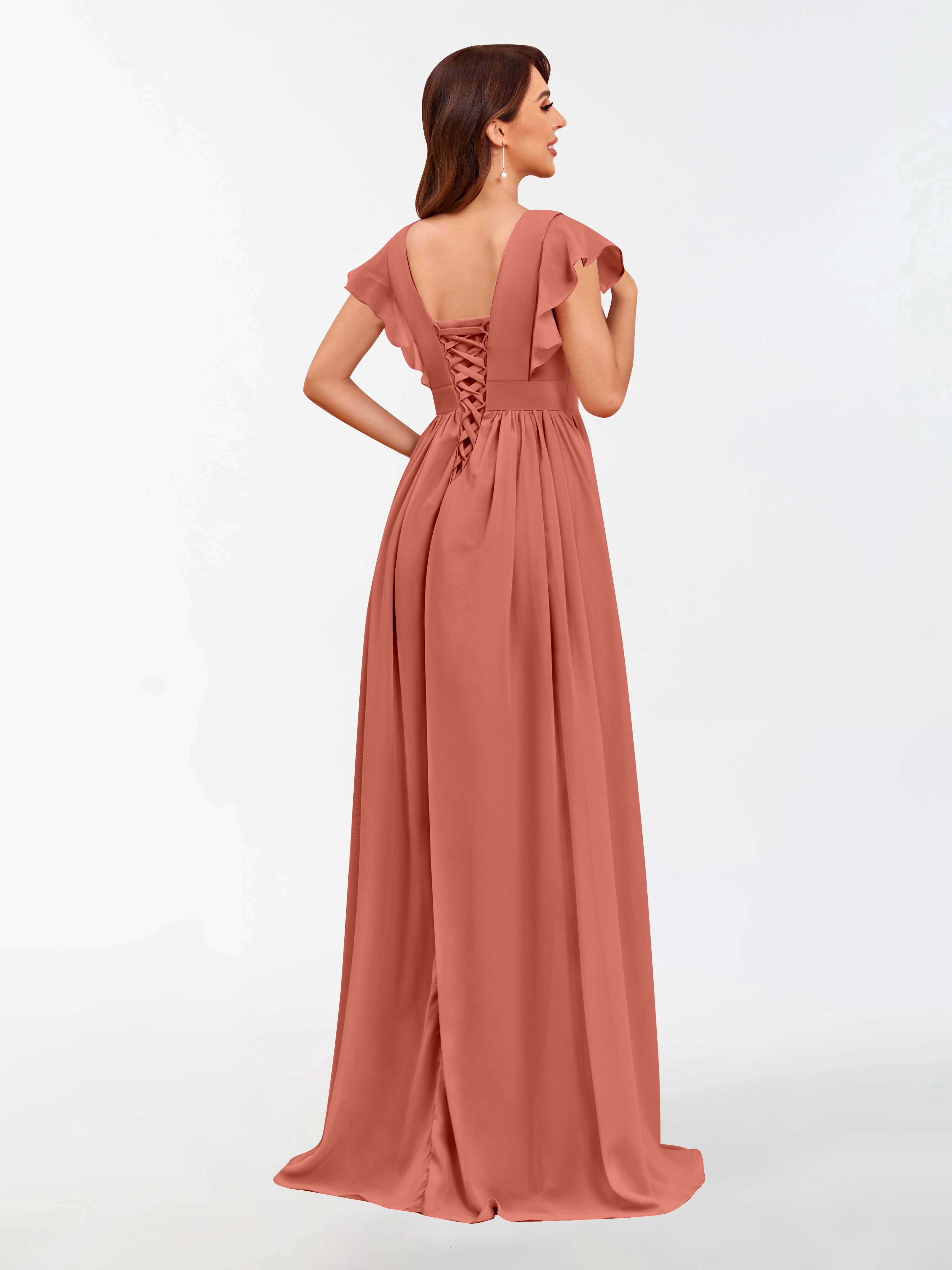 Vera Unique Short Sleeves Long Chiffon Bridesmaid Dresses
