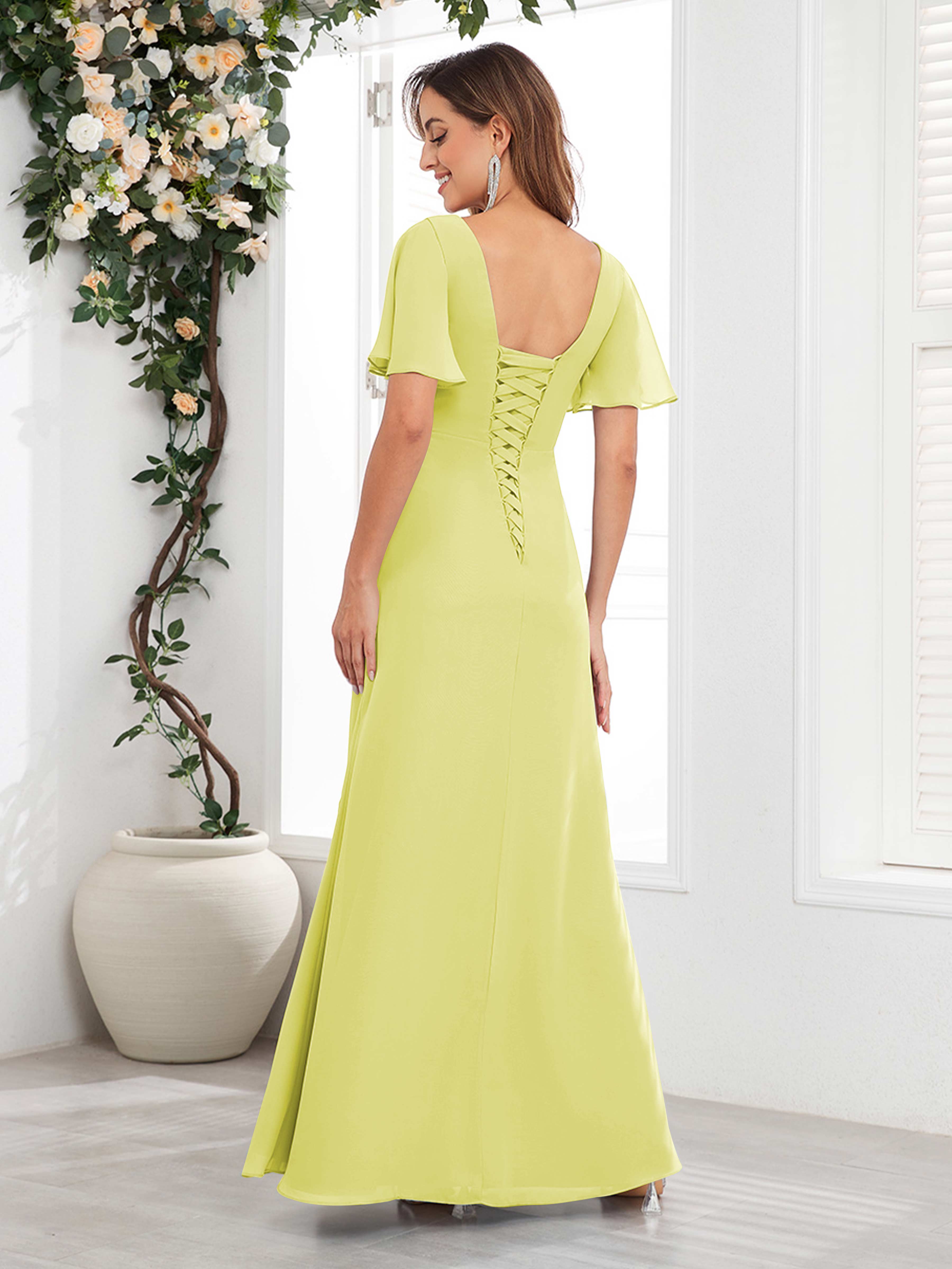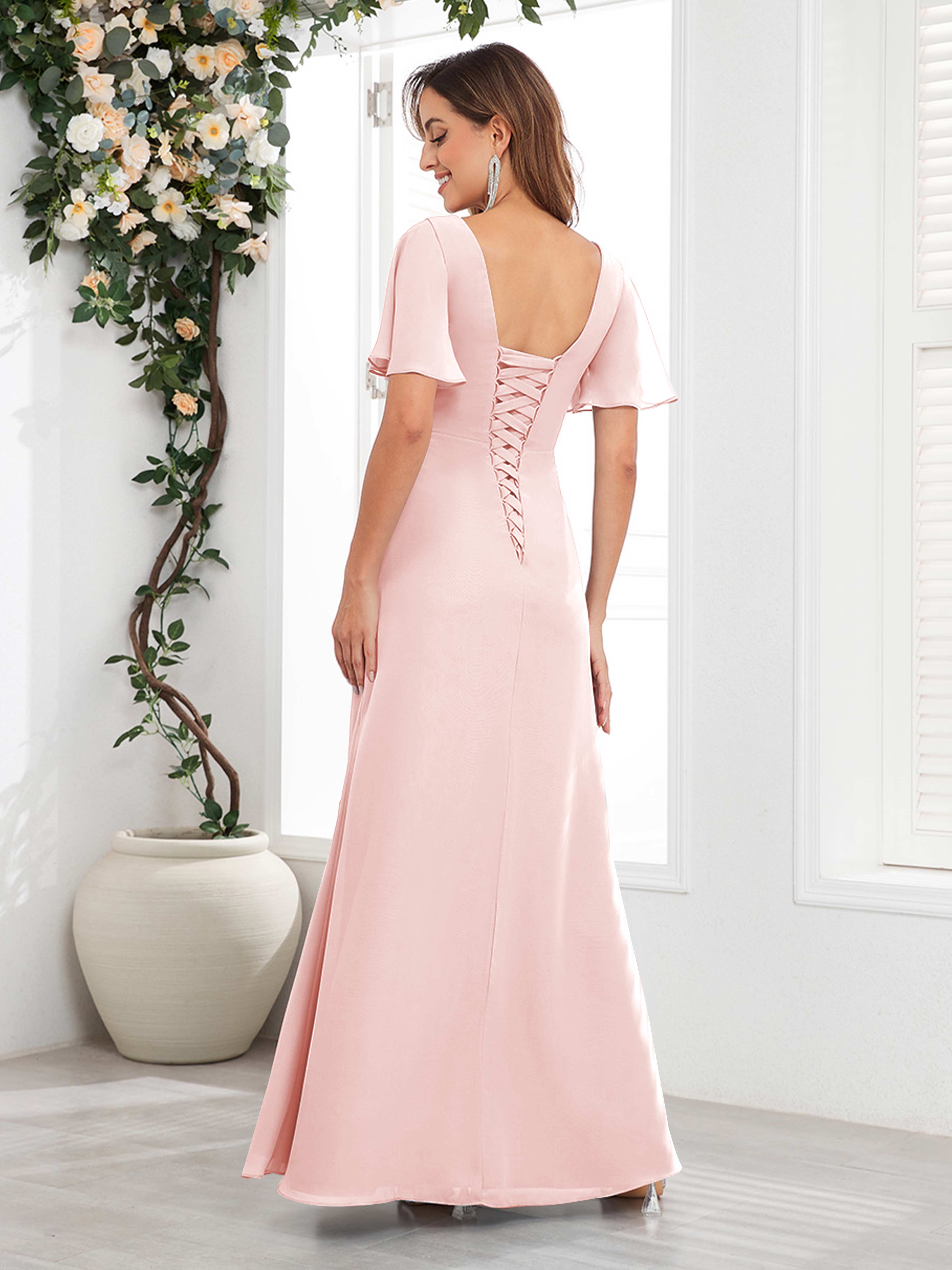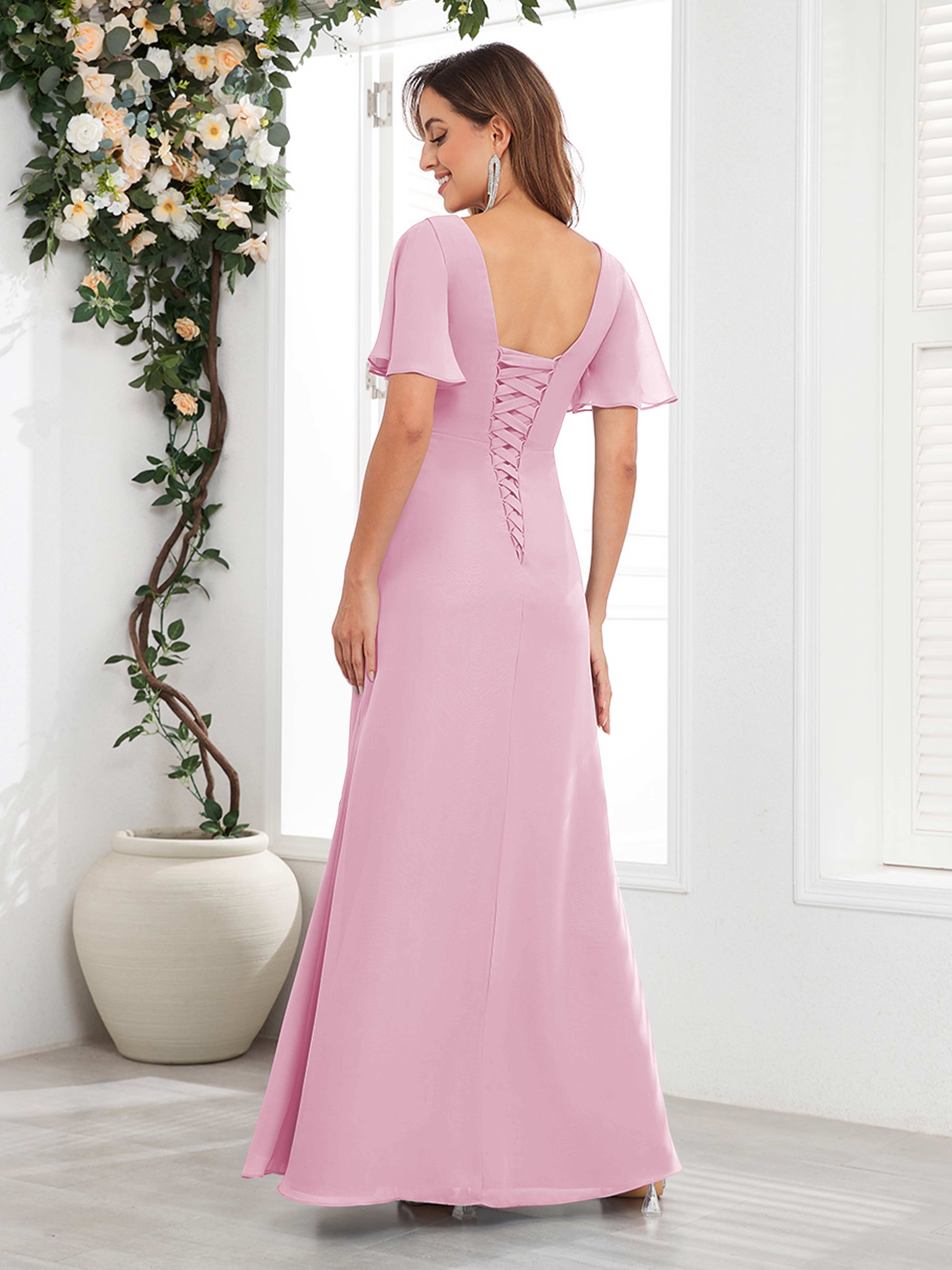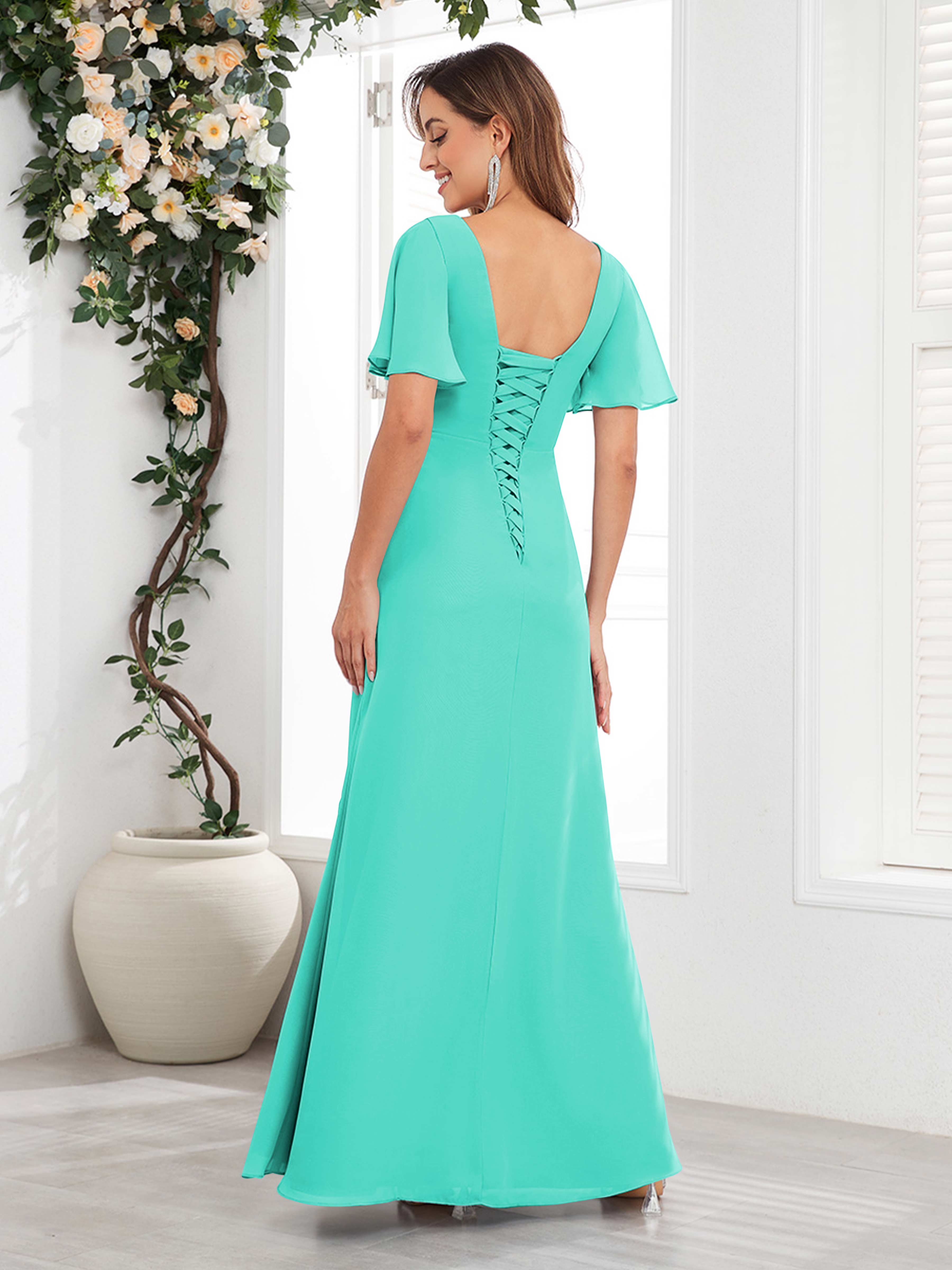 Wrenley Graceful A-Line V Neck Ruffles Beaded Long Chiffon Mother Of The Bride Dresses