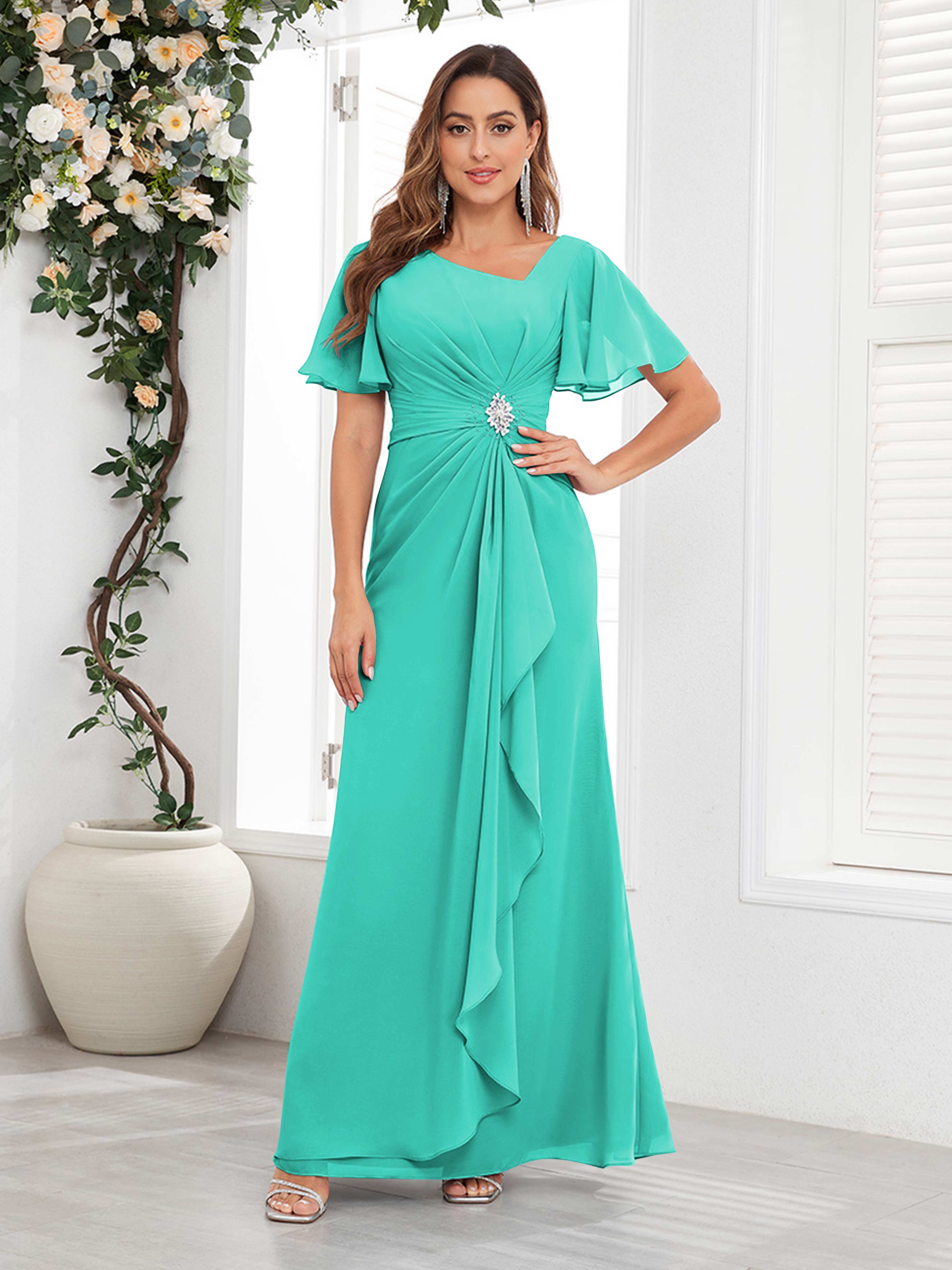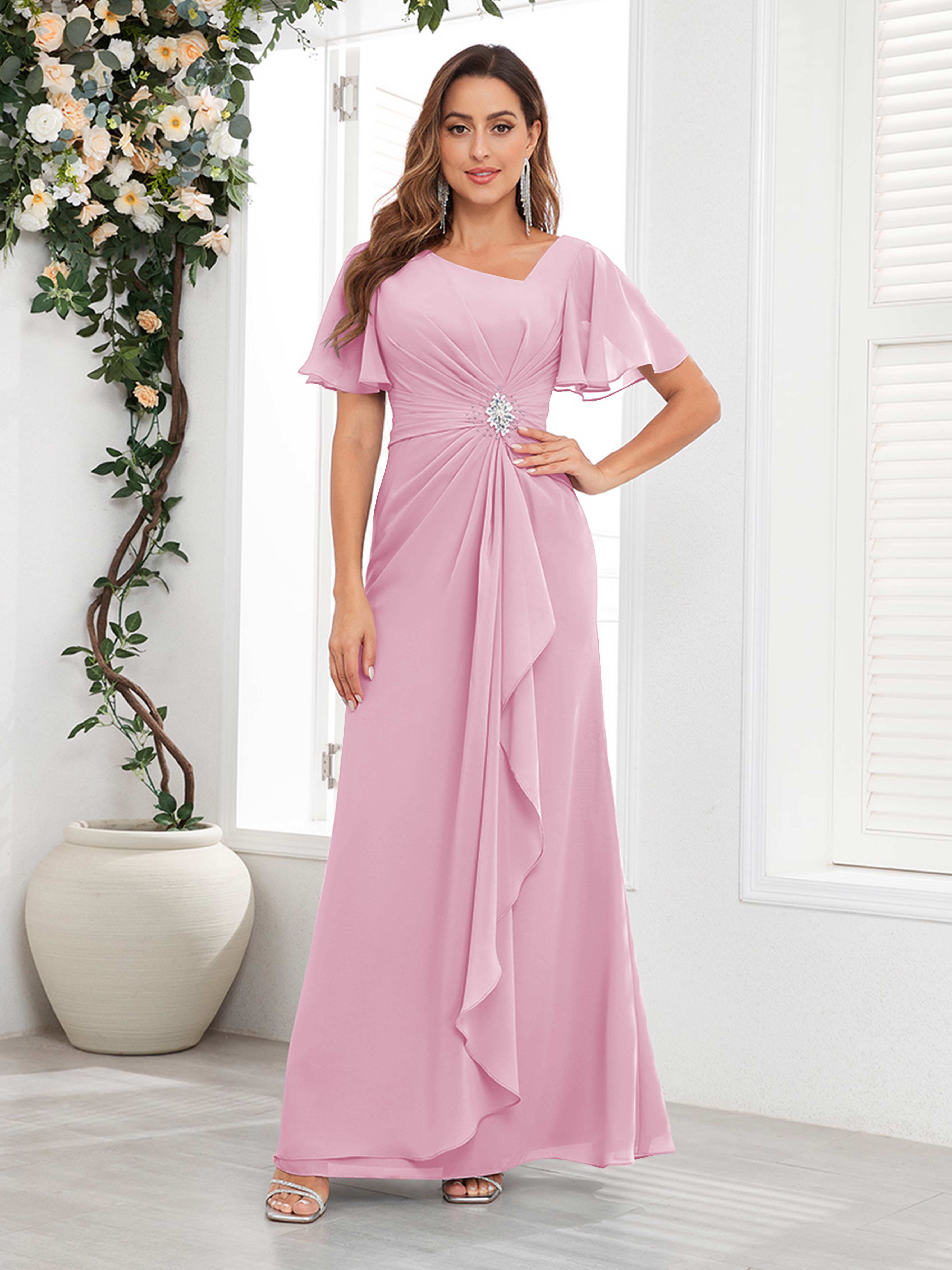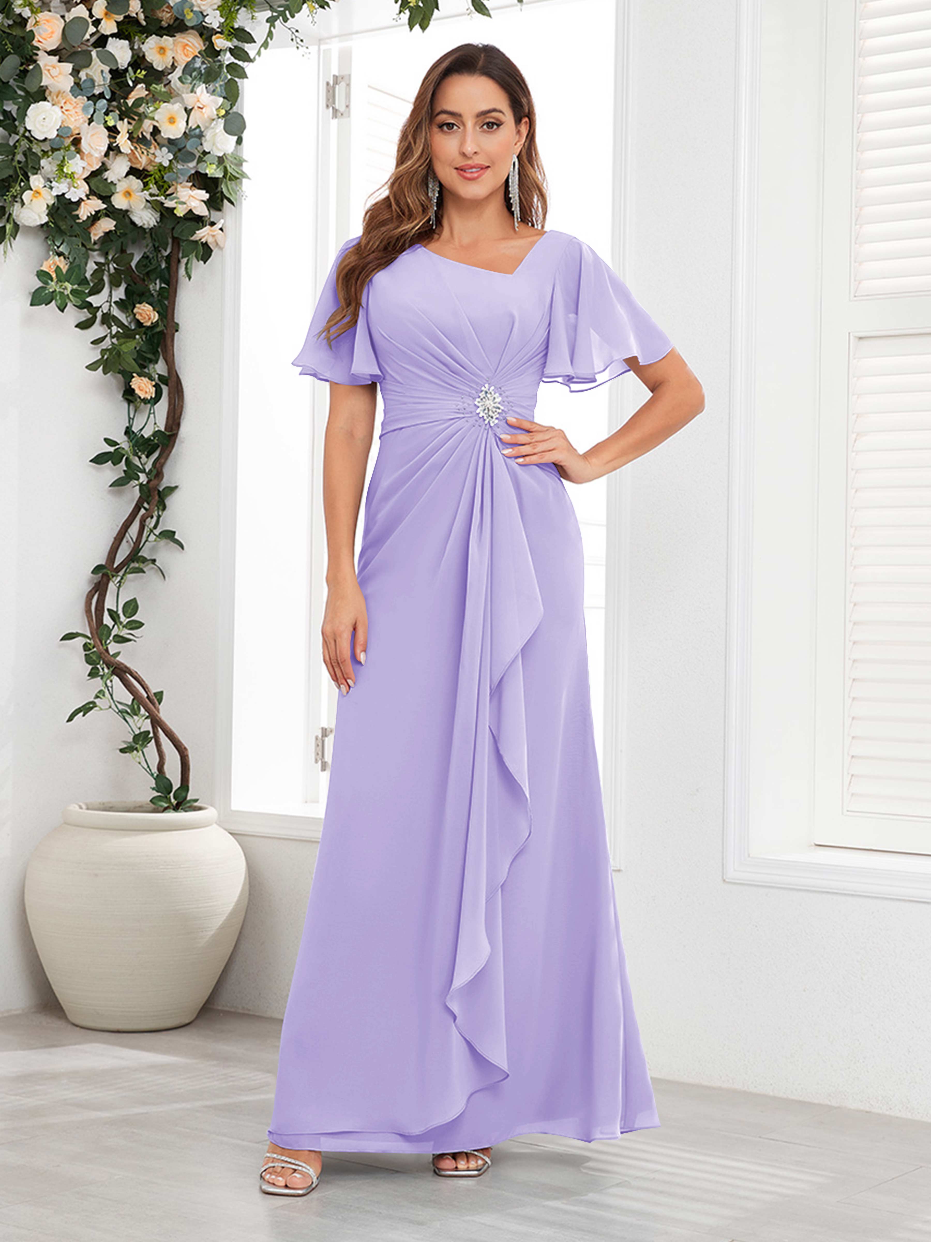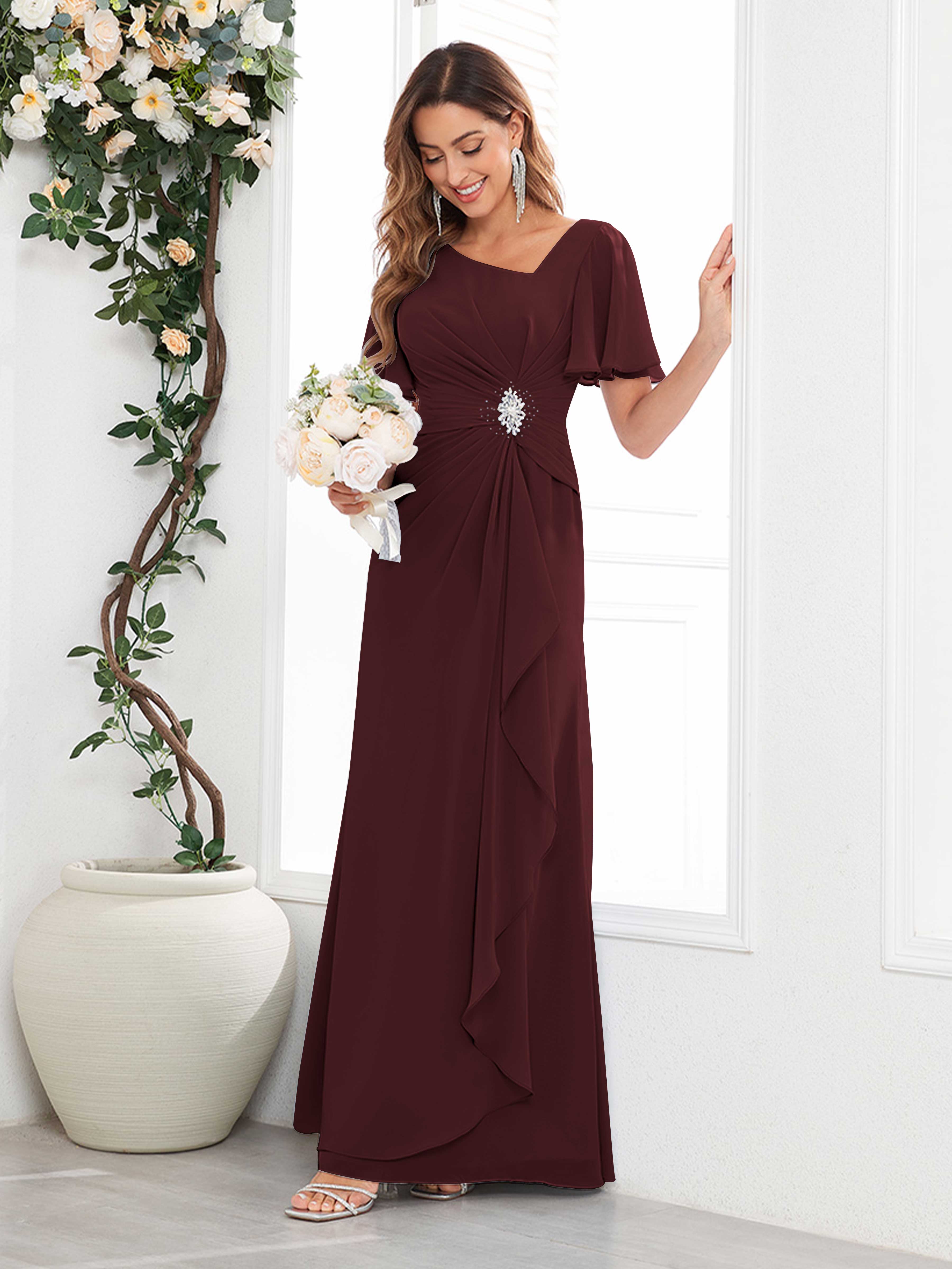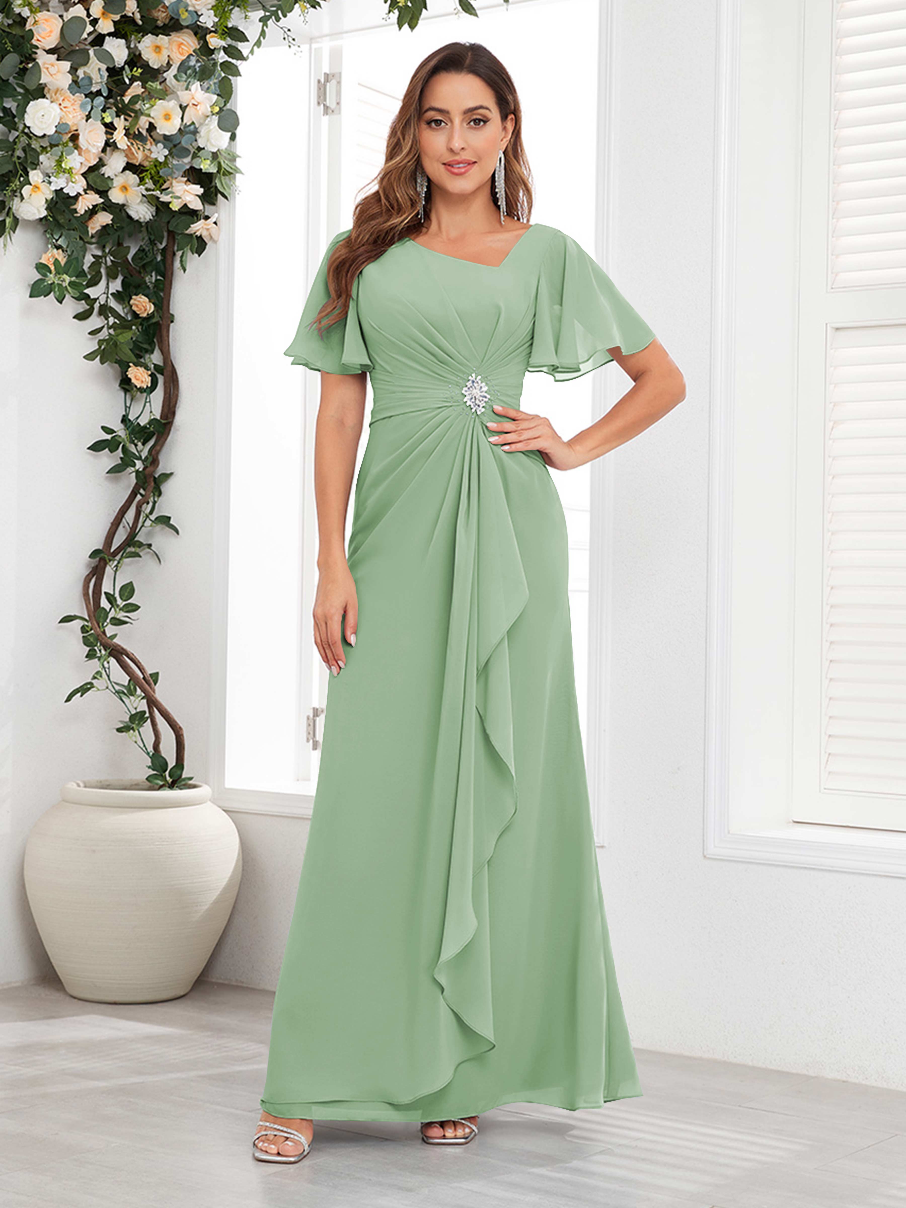Wrenley Chic A Line Beaded Floor Length Chiffon Mother Of The Bride Dresses