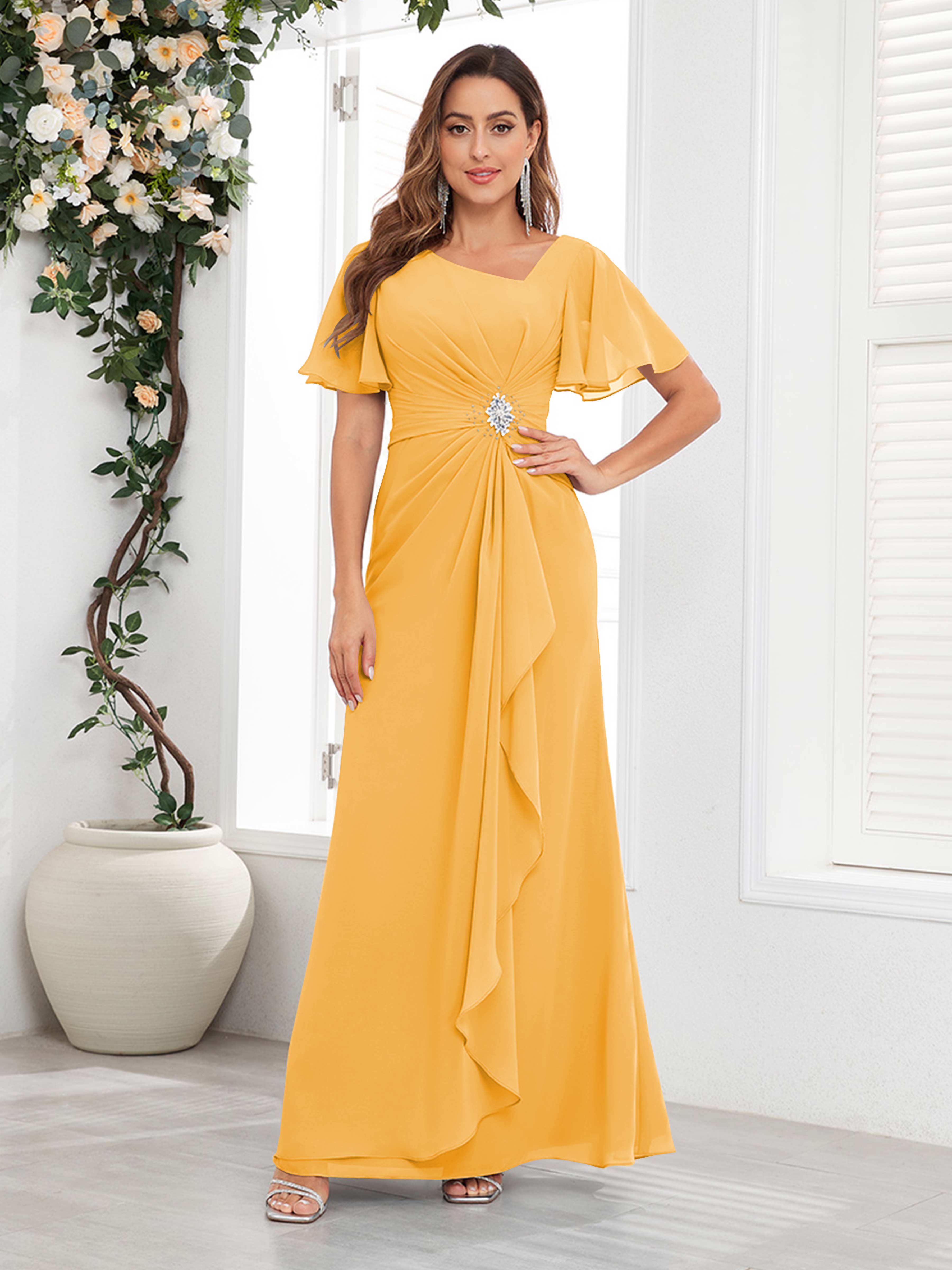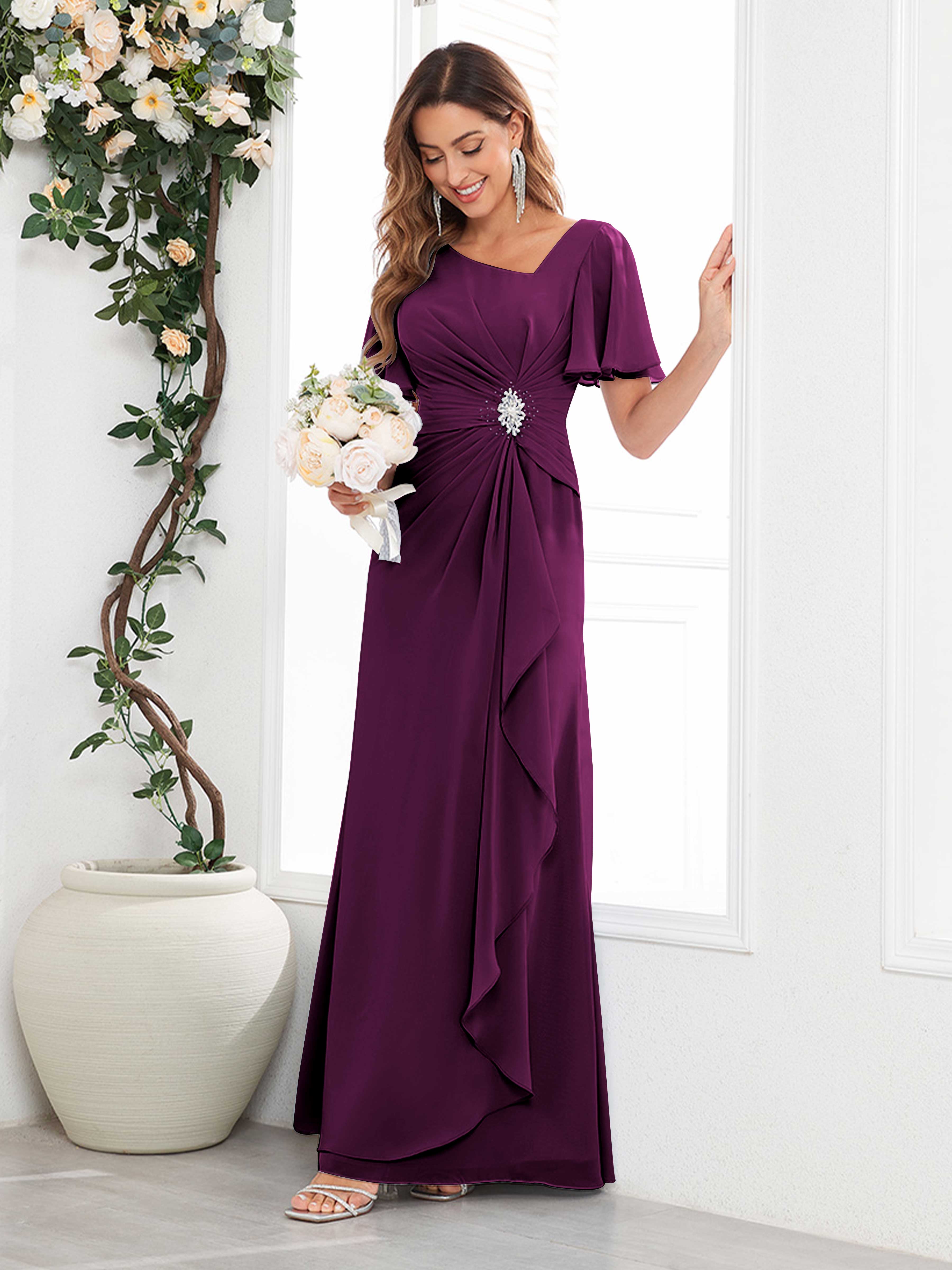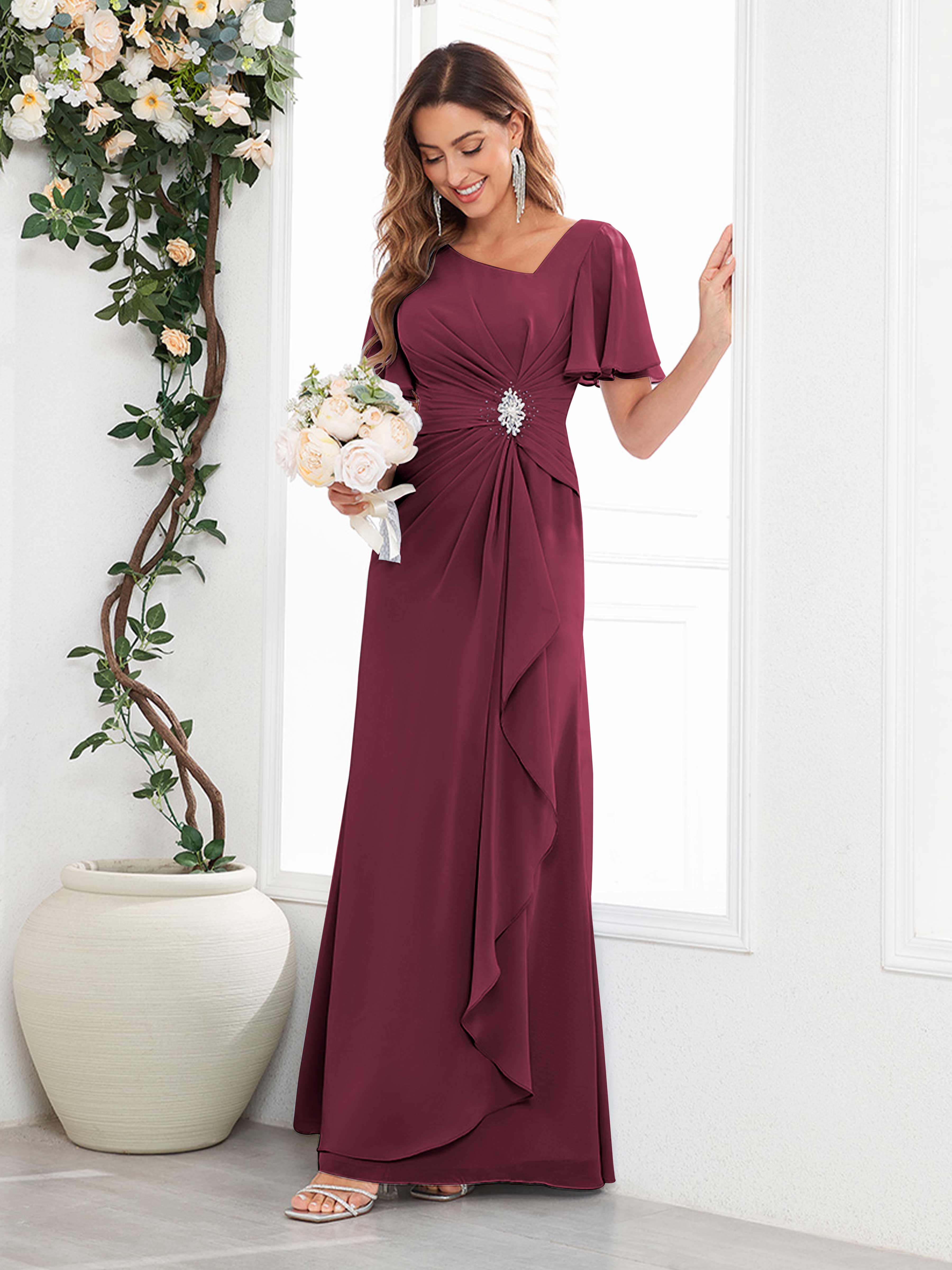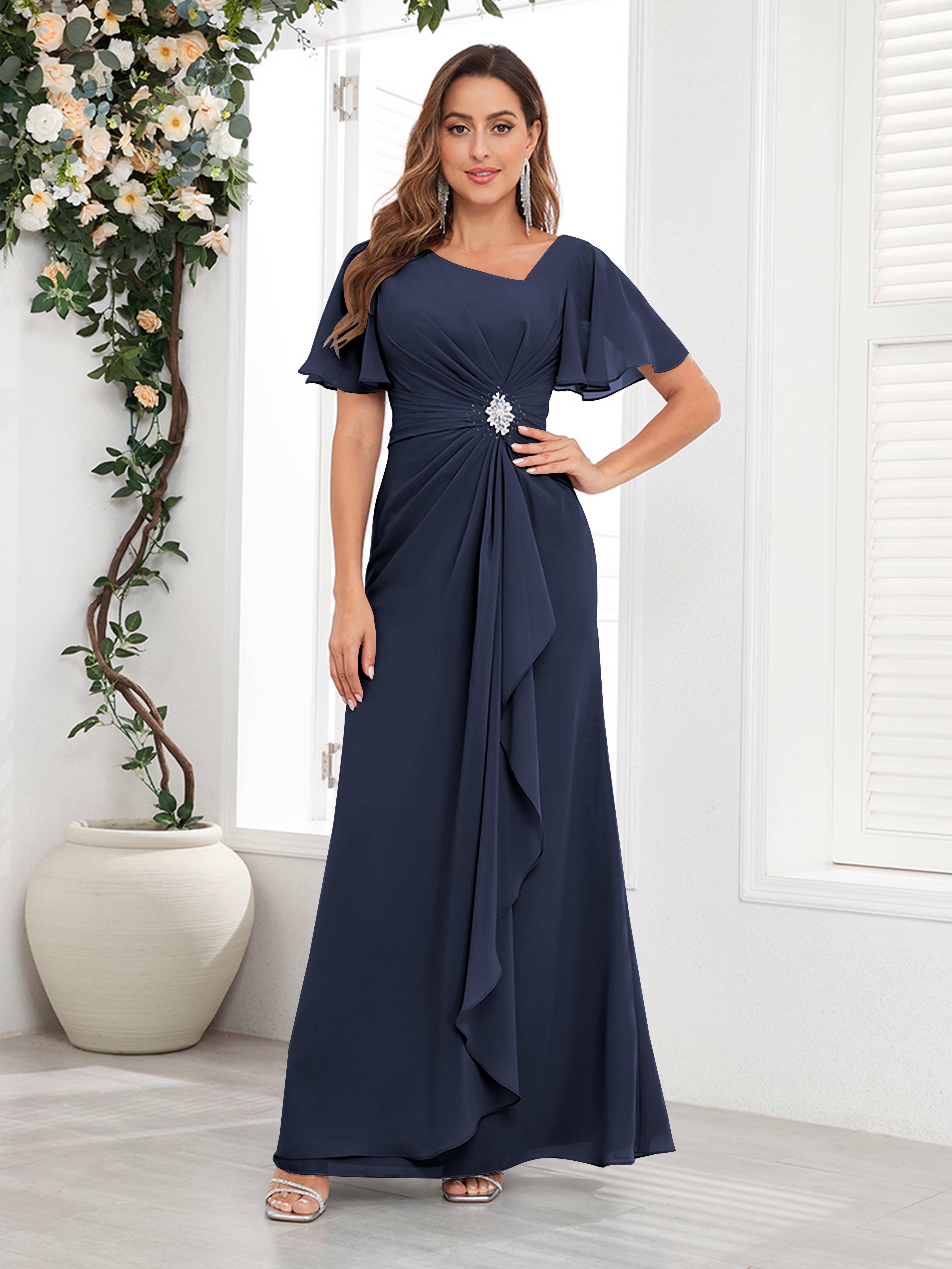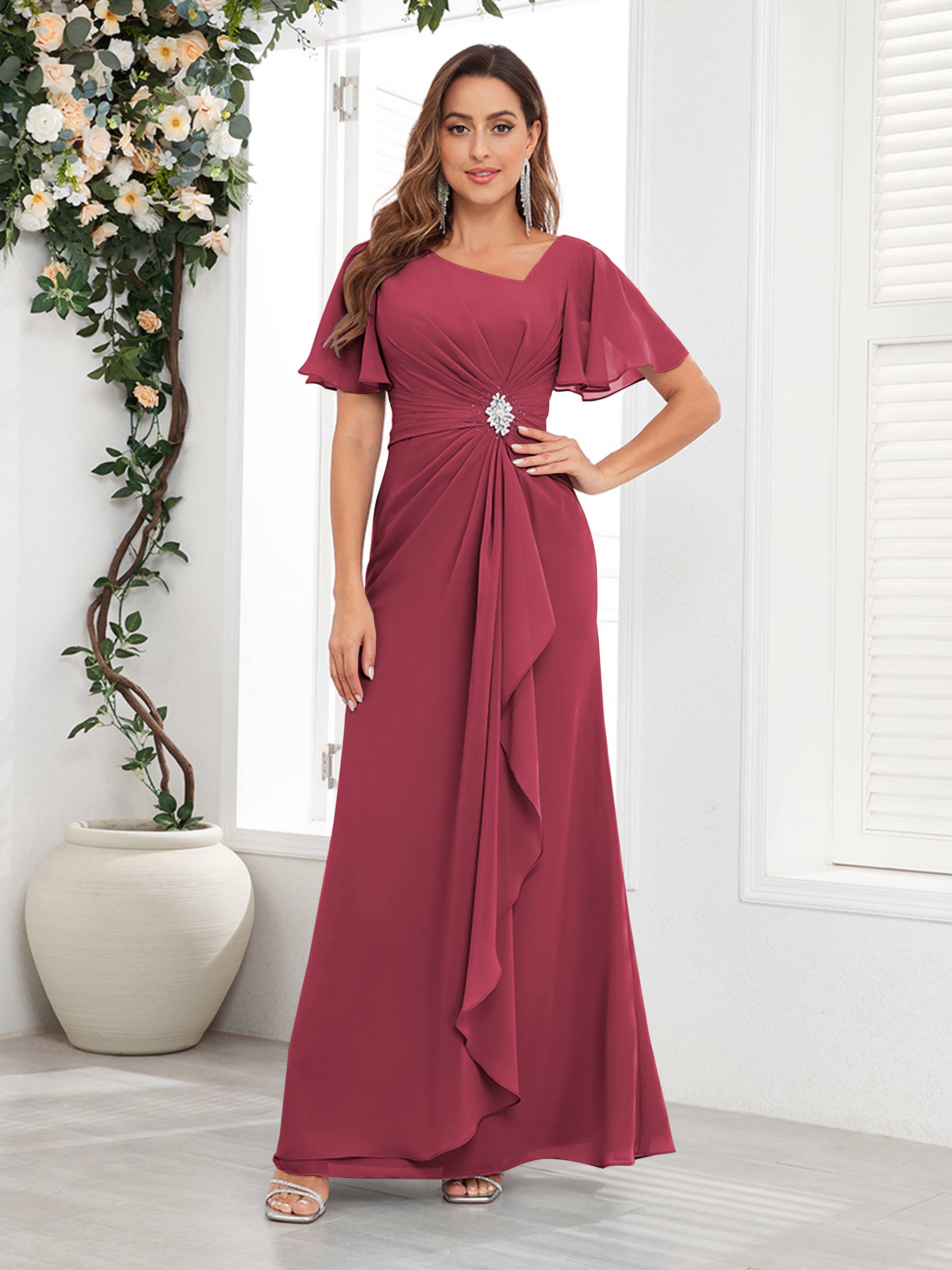 Wrenley Chic A Line Beaded Floor Length Chiffon Mother Of The Bride Dresses